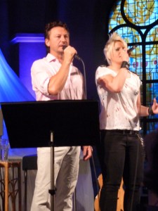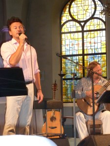 Vi kom precis till kyrkan när insläppet började så vi fick bra platser nästan längst fram. Anders har ju en sådan inlevelse när han sjunger så hans konserter avnjutes bäst på nära håll. Helén och hennes mamma anslöt strax efter att vi satt oss. Sen var det en knapp timmes väntan innan konsertern började. En början med tonerna av Petterson Berger och En vänlig grönska. Sen som vanligt på en Ekborg konsert blev det en blandning av musikal, visor, pop och Tom Leary. Ingen kan ju tolka Leary som Anders. Med hänsyn till det tragiska i Norge i går hade Anders valt att byta ut Jägarvisan av Leary mot Belive som en duett med Caroline Larsson. En mycket finstämd version. Caroline Larsson var gästartist och framförde ett par egna låtar och några duetter med Anders, som Vem går i trasiga skor och en fantastiskt vacker The Prayer. Efter drygt 1,5 timme avslutades konserten med Anthem. Gåshud!