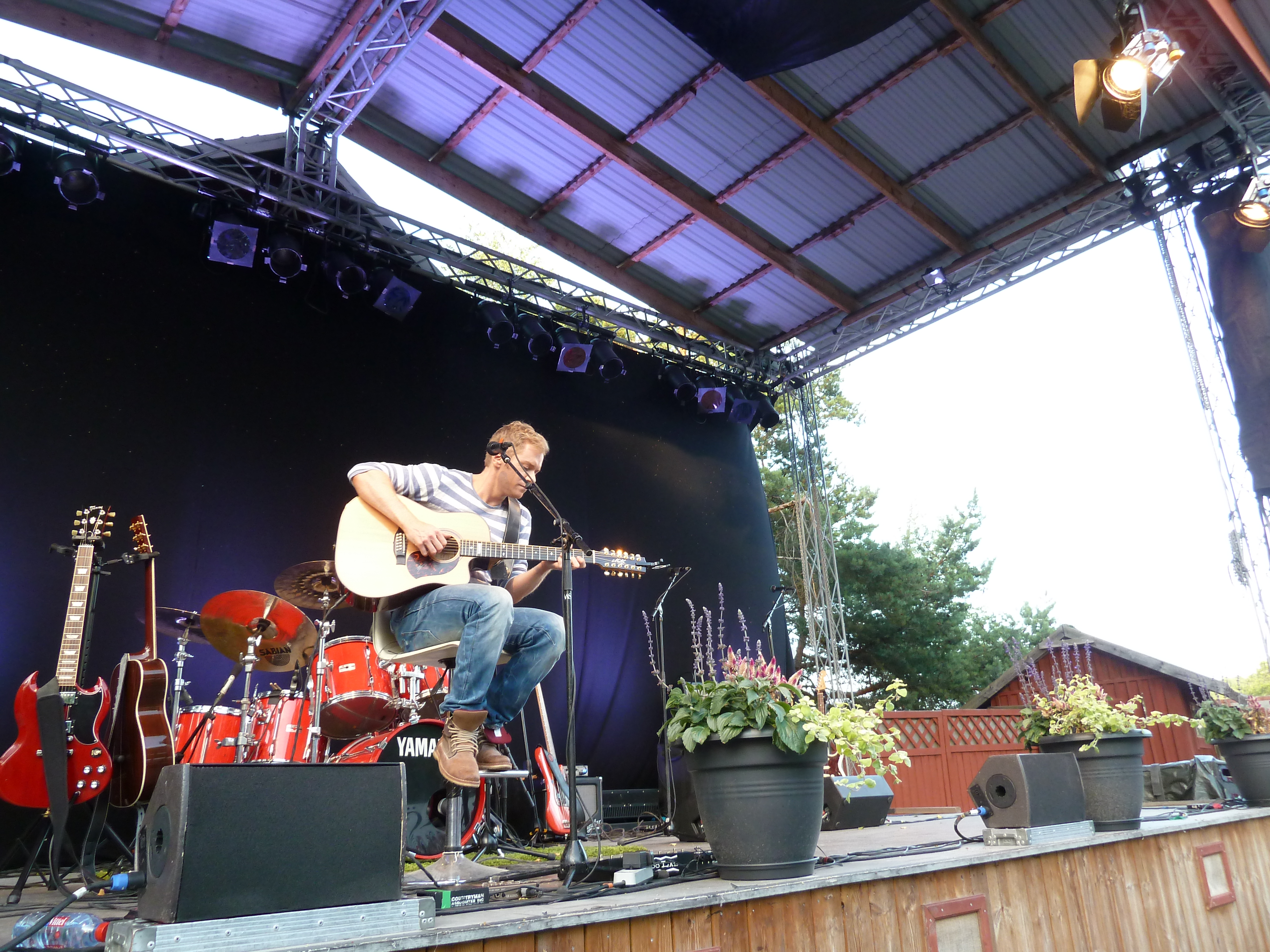 När vi kommer ut och går runt ön, så håller Peter på och soundchecka och det låter mycket lovande! Det här kommer att bli bra!
