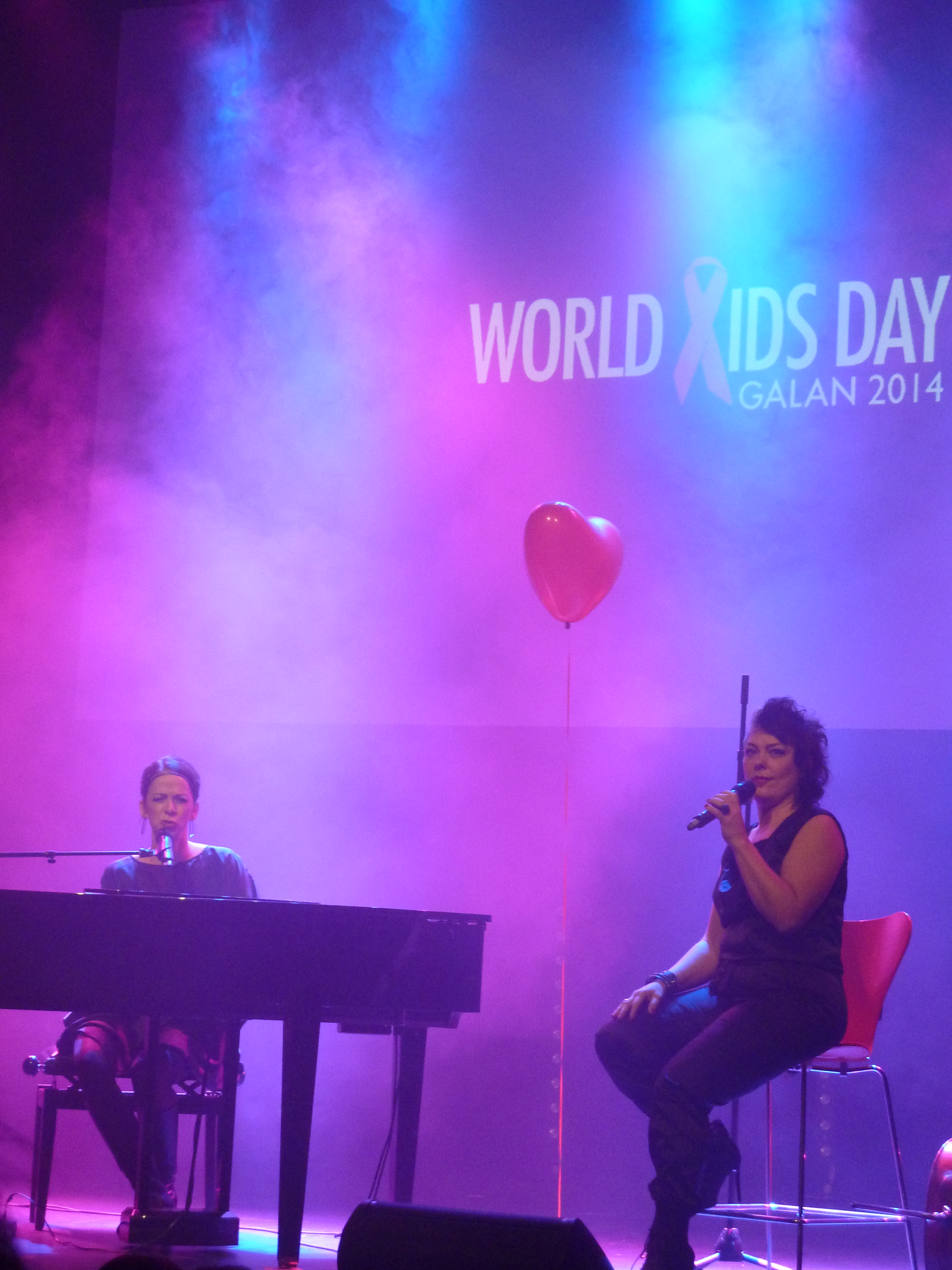World Aids Day galan anordnades för 6e året och i år på Rival. Eldsjälen bakom galan är Peter Englund som brukar vara konfrencier men iår delade han bådet det och en del av sina klänningar med Sofia Wistam. Sofia skötte jobbet galant. Hon är ju ett riktigt proffs och det var ett antal kreationer vi fick se på scenen. Galan är inte den mest välsmorda galan, det är lite långa avbrott, mickar som inte stängs av i tid etc, men det vägs upp av det engagemang som både aristerna på scen och publiken visar. Det här en gala som berör många på olika sätt. Galan var utannonserad till dryga 2 timmar, men det höll på drygt 3,5 timme inklusive paus och lotteridragning.