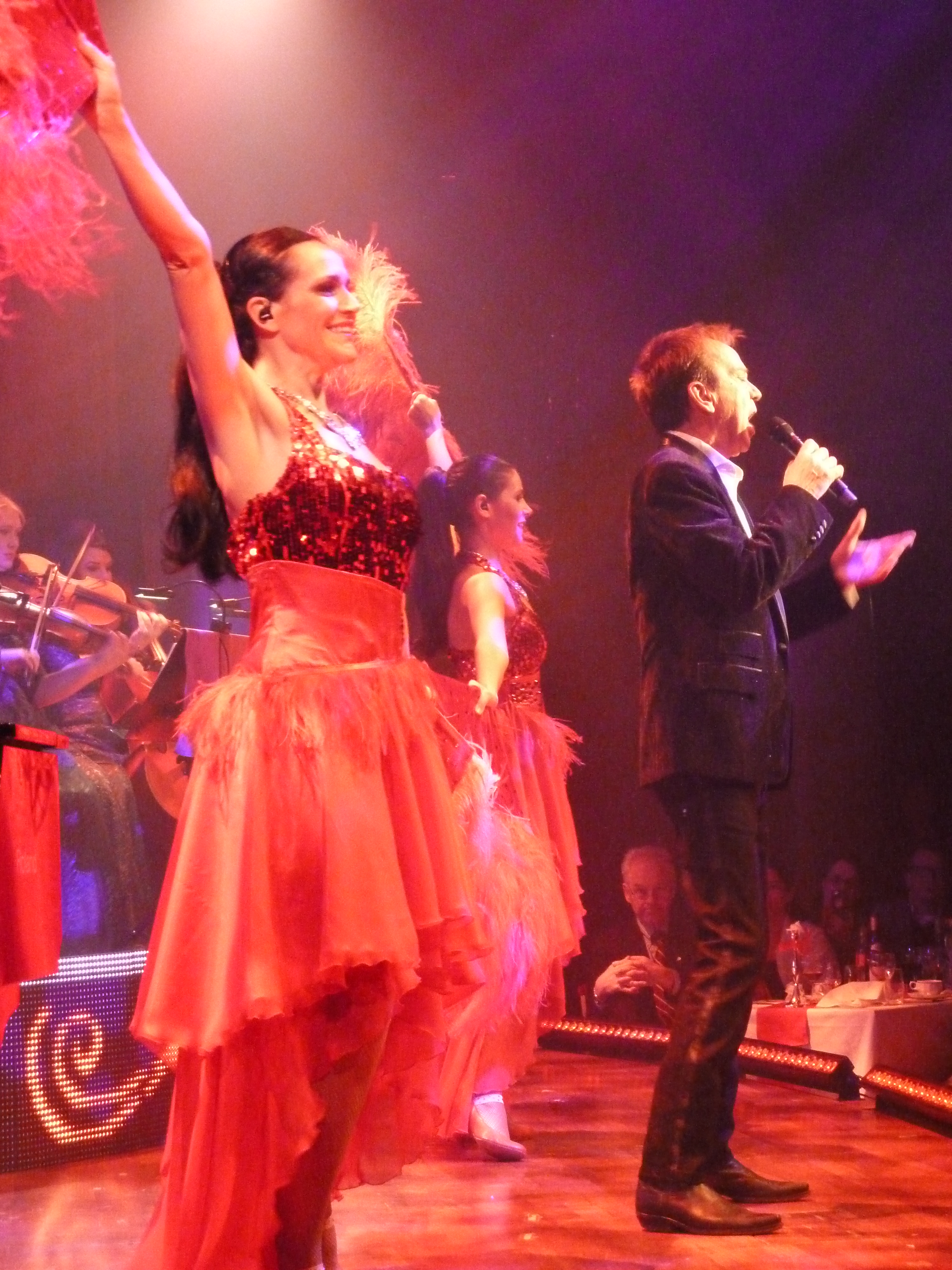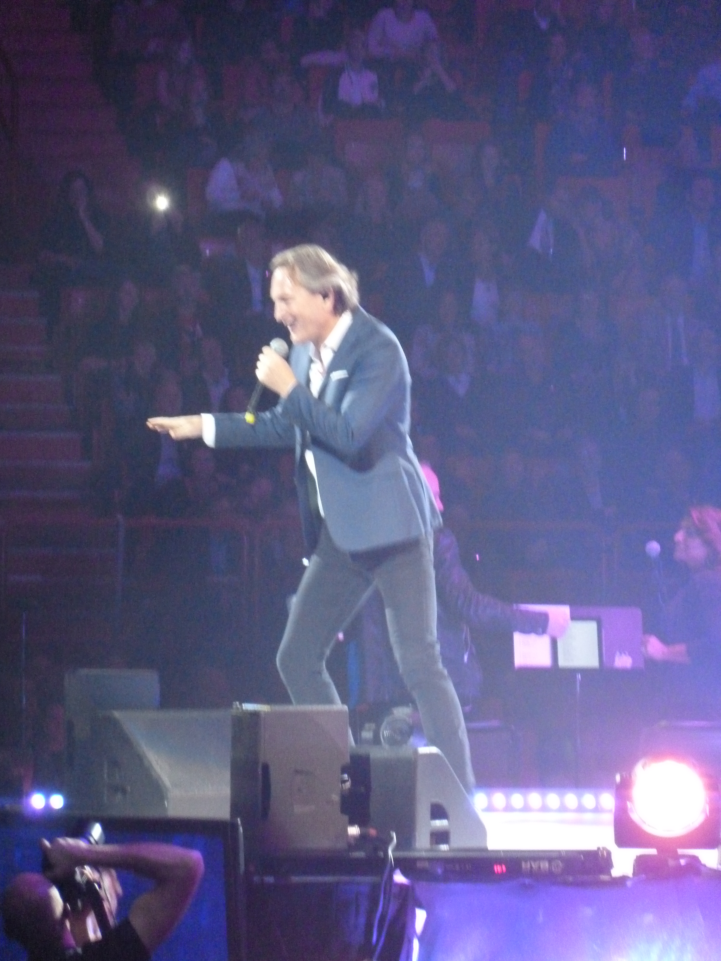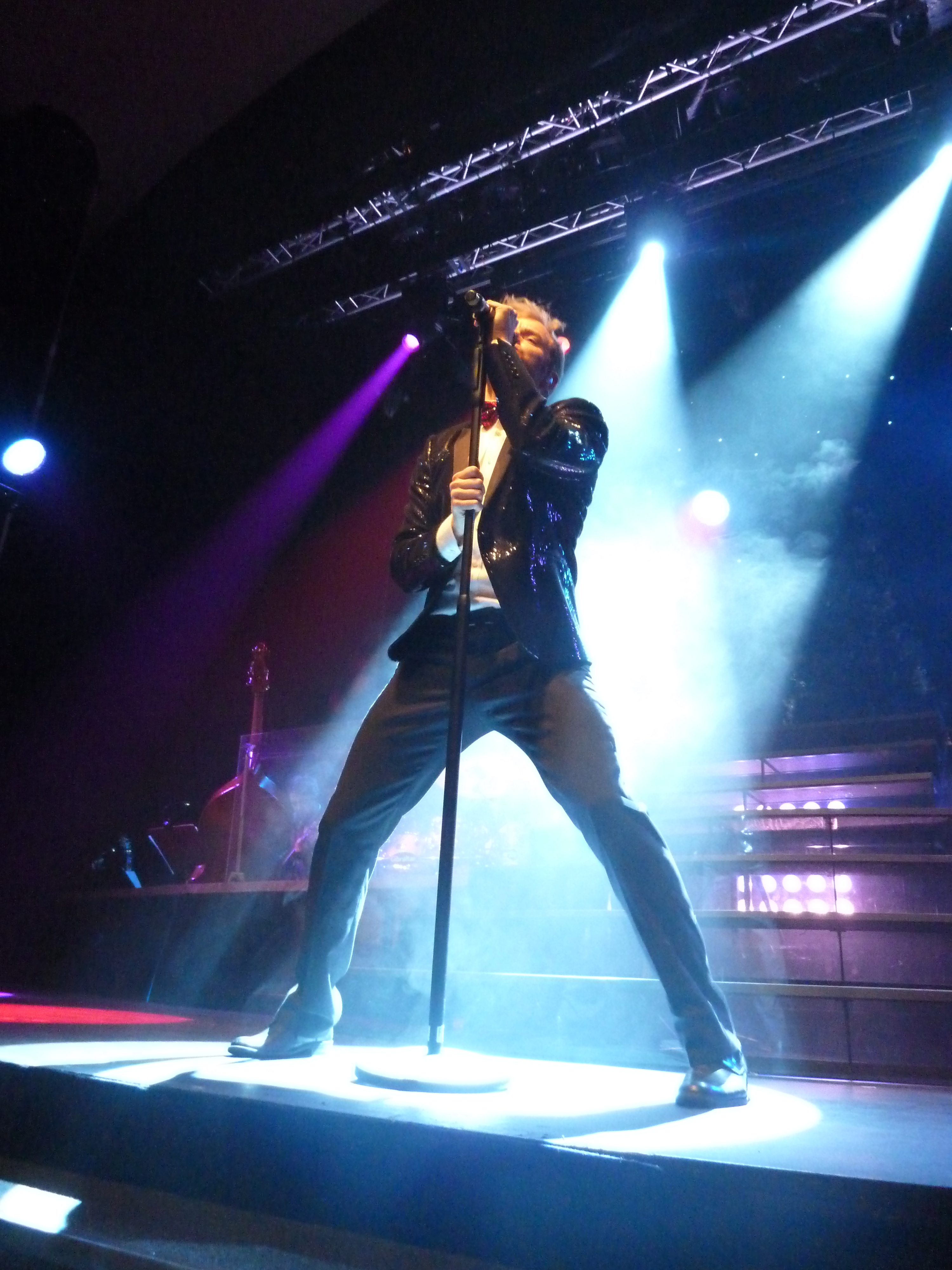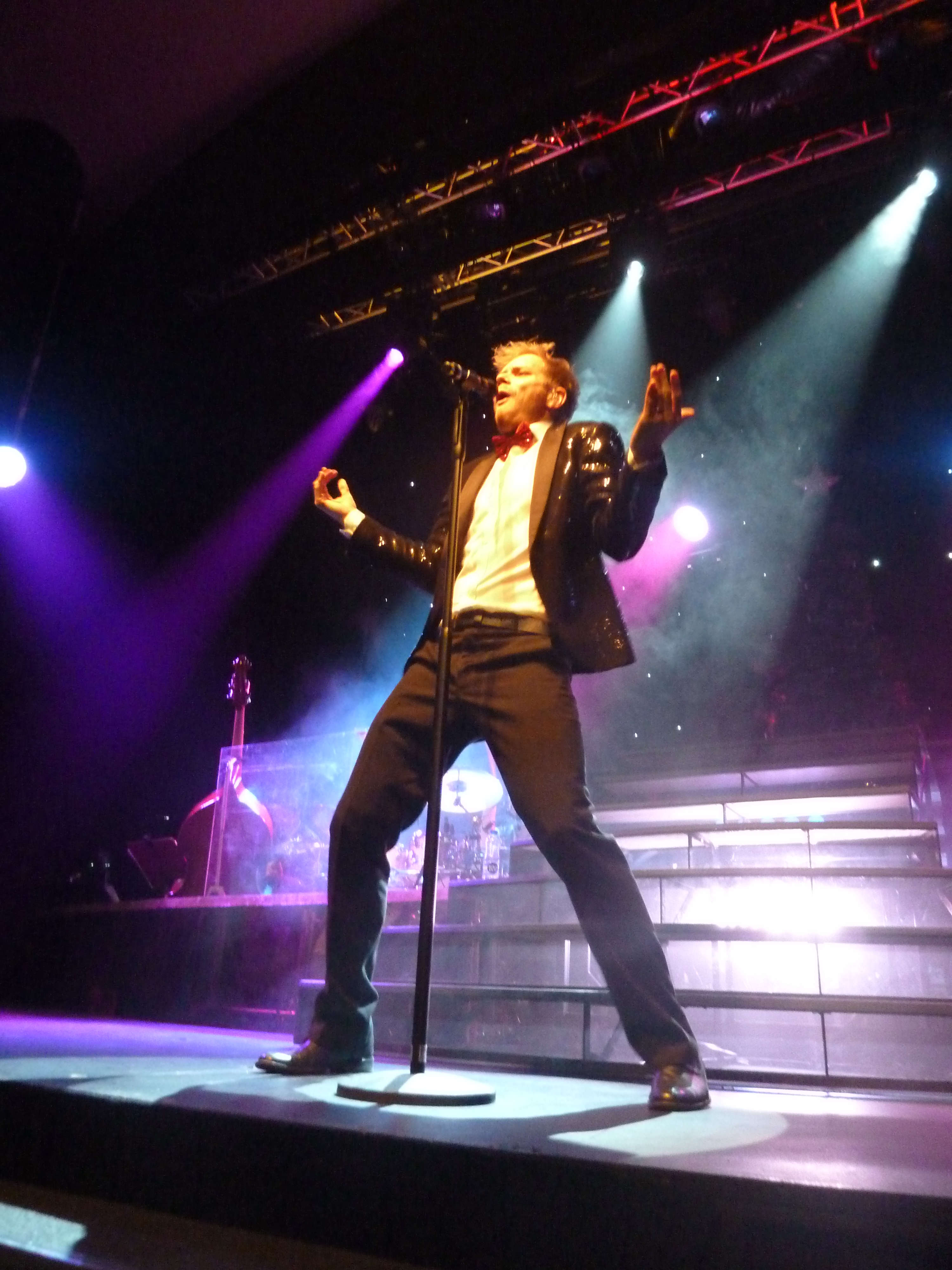 21.30 dras draperiet upp och ut kommer Björn Skifs, Hasse Gardemars fantastiska storband och kör/dansarna Kerstin Ryhed och Maria Benhaji. Och under ca 1 timme och 20 minuter bjuder Björn Skifs på en bra Storbandsshow med lite lagom glamour och Las Vegaskänsla. Han har en röst som passar till det mesta och har i den här showen valt lite mer storbandsinspirerat än vad han gjort tidigare. Det var en hel del låtar som jag inte hört honom göra förut. Av sommarens mer upptempo show var det inte mycket kvar, och personligen tycker jag nog att sommarshowen var ett strå vassare. Ikväll var det mer storband istället för pop/rock. En del 30tals inspirerat, Hey Jude, My baby just cares for me och mycket annat. Dock inte så mycket klassiska Björn Skifs låtar som nog många hoppats på. Men självklart fick vi höra låten som för 40års sen gick upp som etta på Billboardlistan. Ingen konsert med Skifs utan Hooked on a feeling. Ikväll bjöd han både på storbands- och den vanliga versionen. Det var plymer och allt! I mörkret med dig sjöng han och vandrade ut i publiken och ”flörtade” men två tjejer i publiken, och spelade trumpet förstås! Tillsammans med Kerstin sjöng han den underbart vackra When you tell the world you’r mine, som han sjöng med Agnes på Kronprinsessans bröllp. Och självklart så blev det Michelangelo till publikens stora jubel!