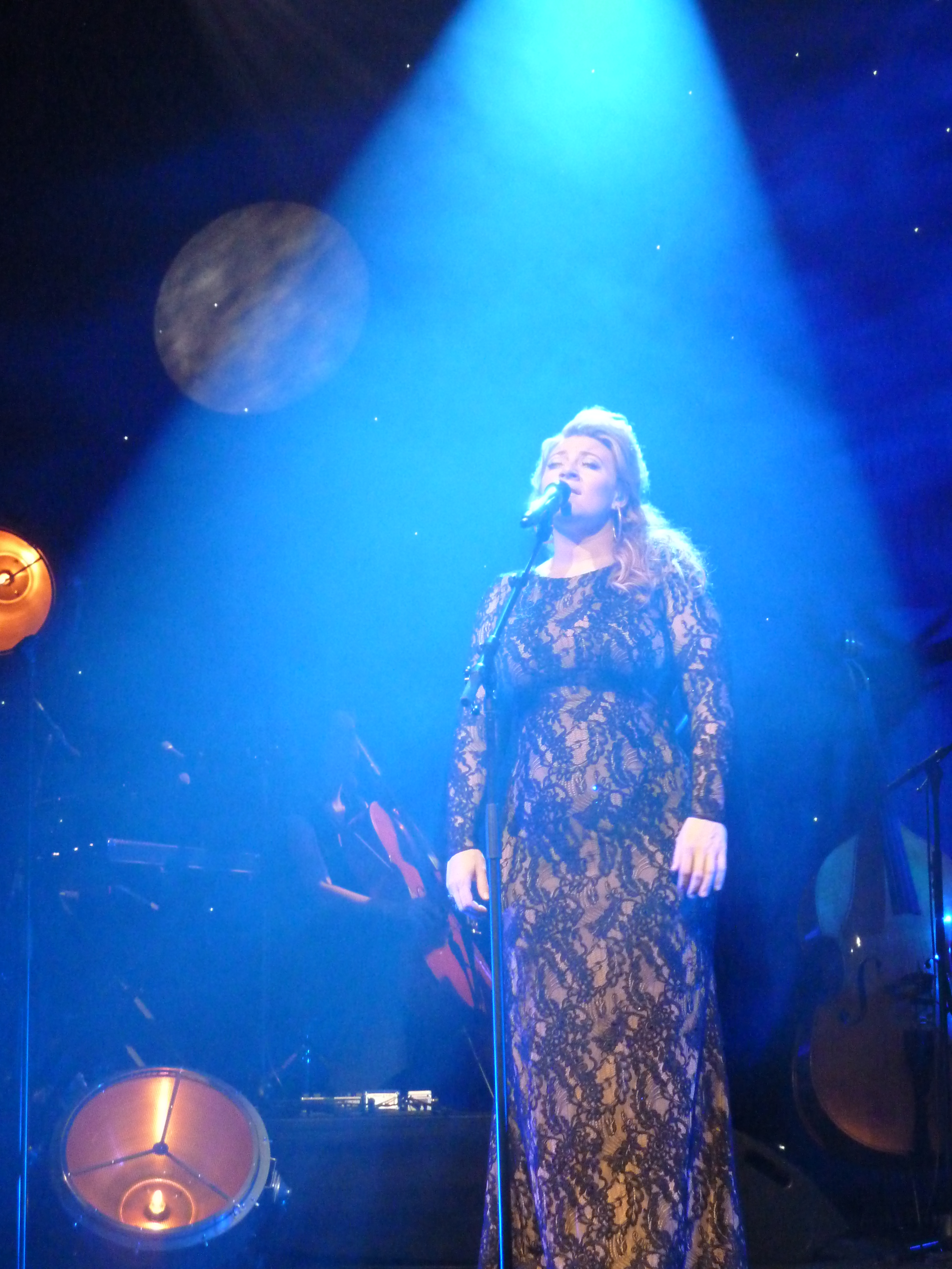 P1070446Dags för fjärde ”julkonserten” på en vecka. Egentligen bara en som har varit en riktigt julkonsert, Peter och Matilda. För Sarahs är inte heller någon riktigt julkonsert, utan en Vinterkonsert som är inspirerad av de 6 vintermånaderna (enligt Sarah räknas inte höst och vår) och den känsla som den här gråa och mörka tiden ger Sarah. Och det kan ju låta som en trist och tråkigt konsert om det bara ska handla om det grå… och någon Bjällerklang stämningen det kan man inte räkna med, utan en väldigt finstämd mot det melankoliska. Från första tonen som Sarah sjunger blir man helt trollbunden och bara njuter. För även om det är få låtar i Vinterland konserten som är upptempo så blir det inte tråkigt, det är bara en lång njutning hela tiden.
