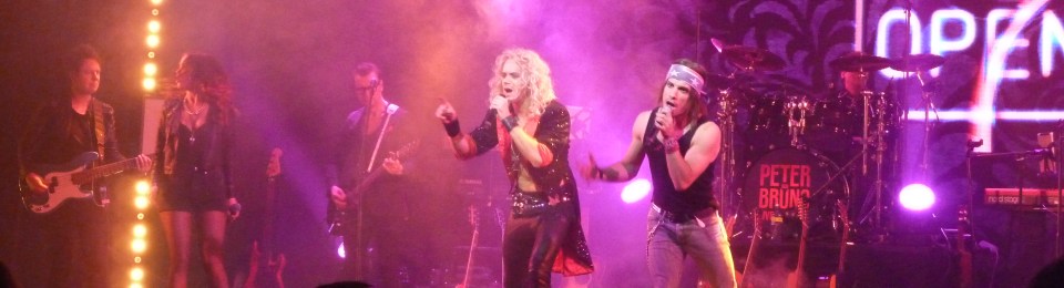 Det som är så speciellt med dessa östgötar är att de bjuder så mycket på själva och det är även om till viss del en inrepad konsert så ges det utrymme till spontanitet och bus med varandra. Det känns som att man är hemma hos dem och de jammar loss och har det så fantastiskt kul.  Publiken älskar de här killarna. Från första början är det full fart på publiken och skulle man kommit några minuter sent skulle man kunna tro att att det nästa var slut, för så exalterad är publiken i den första låten Don’t stop me now. Och så fortsätter det hela den 2.5 timmes långa konserten. Första akten är lite lugnare än akt två. I akt två drar det igång med fullt ös då killarna går in i sina karaktärer från Rock of Ages, Drew (Bruno) och Stacee Jaxx (Peter). Man får verkligen tacka för att Rock of Ages sattes så dessa killar träffades och det klickade så fantastiskt mellan dem, annars hade vi inte fått se detta! Två härliga musikal killar som älskar rock!