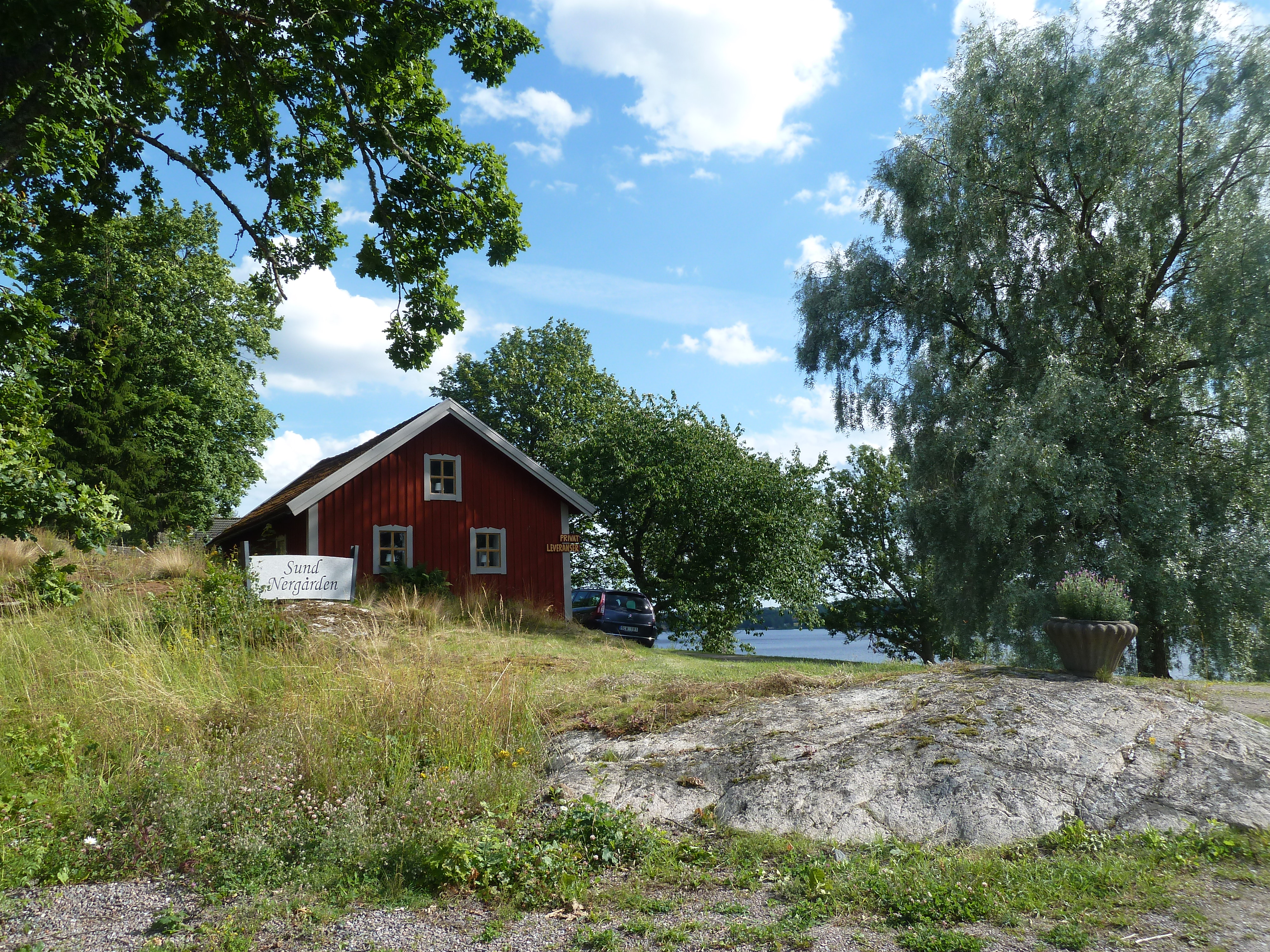 Det tillhör sommaren att gå på utomhuskonserter och då finns det några scener i Sverige som är mer magiska än andra. Den mest kända är nog Dalhalla, kalkstensbrottet som gjordes om till konserarena och är helt fantastisk att besöka. Lite mindre känd är nog Odensjön i Röstånga. En väldigt speciell arena. Mitt inne i skogen ligger en sjö med en scen så artisterna rors ut till scenen. Publiken sitter lite överallt på strandkanten, uppe på berget, ja var man kan få plats. På berget bakom scen lyser marschaller upp Augustikvällen. Väldigt magiskt och måste upplevas av den som gillar utomhuskonserter. Och till dessa magiska scener kan man sedan ett år lägga den lilla scenen på Sund Nergården med vidunderlig utsikt över sjön Sillen, skogen och de röda husen på andra sidan sjön. Sund Nergården Gästhem ligger mellan Trosa och Vagnhärad och består av ett par faluröda hus/stugor, en nybyggd glamping, badtunna med hästhagar och bondgårdar som grannar. Mer svensk sommar än så kan det ju knappast bli. Ägarna till detta underbara ställe är Niklas Andersson, en av vår mest meriterad musikalartister och Johan Eriksson, kock och sommelier, har snickrat och fixat och gjort det här till ett helt fantastiskt ställe. Väl värt ett besök även när det inte bjuds på konsert.