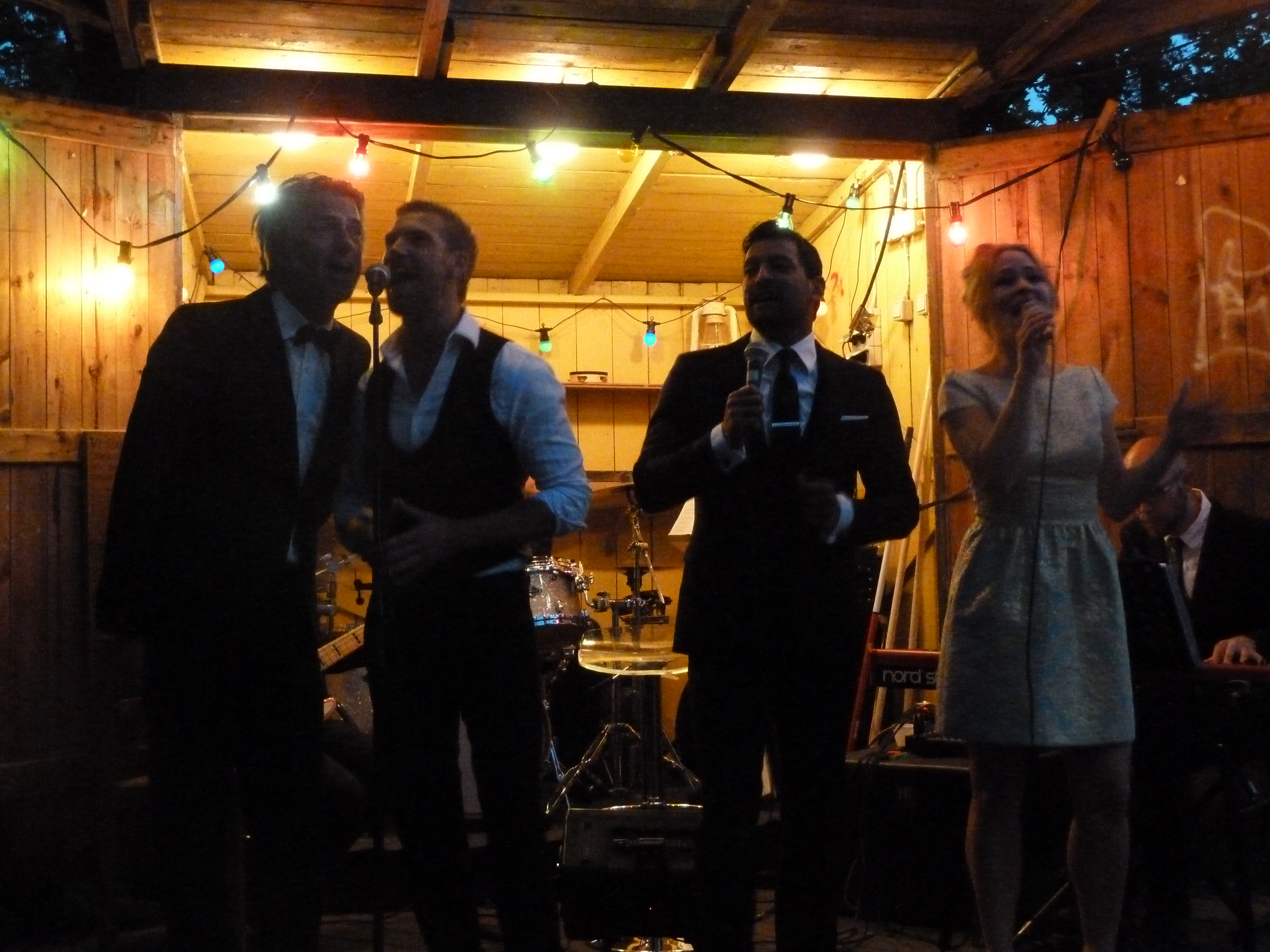 Ännu en underbar augustikväll i Stockholm. Passar perfekt för en utomhuskonsert hos Lasse i Parken med Cookies n Beans. Lasse i Parken är ett fantastiskt ställe på Söder. Ett litet ställe som ger viss Folkparkskänsla. Det servaras god mat också. Boka bord tidigt är att rekommendera om man vill sitta ordentligt vid bord, men är man vill sitta lite närmre scen så ska man se till att vara tidigt på plast så man får sitta på de stolar eller bänkar som de sätter fram mellan scen och borden. Det gick alldeles utmärkt att äta med tallriken i knät!