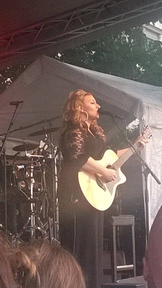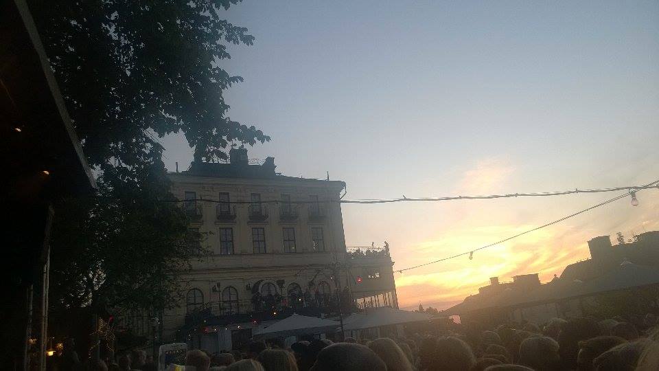 Konserten börjar klockan 20 och då bakom publiken utöver takåsarna och Gamla Stan är det en fantastik solnedgång och himlen brinner i gult och orange. Hade de vänt scenen åt andra hållet istället så hade det varit en helt fantastiks kuliss. Så vacker himmel var det. Men nu var vi inte där för att njuta av naturen under utan av underbara Sarah. Njuta fick vi verkligen göra. Sarah har så många underbara låtar och hon bjöd på en härlig blandning av dem.