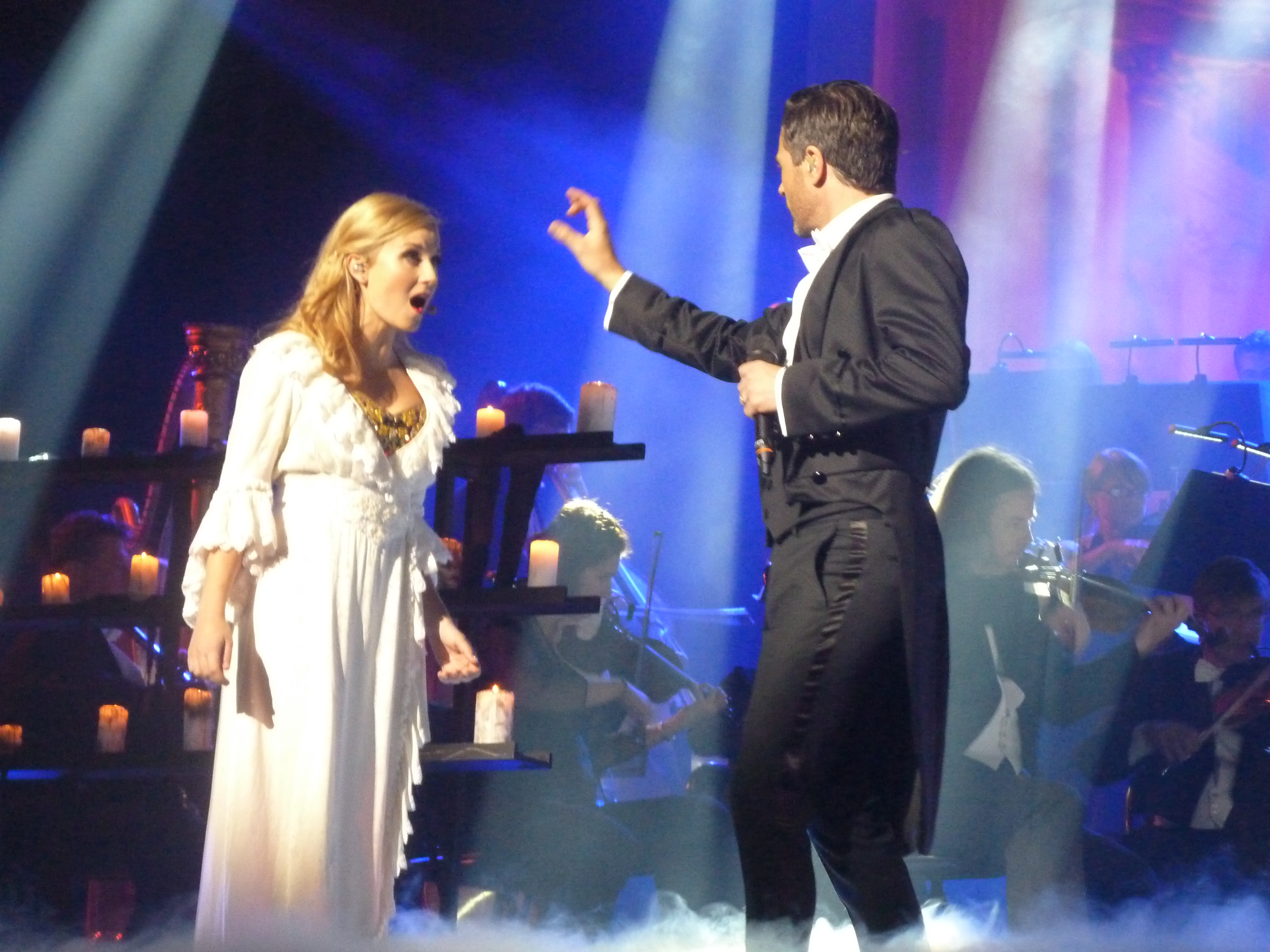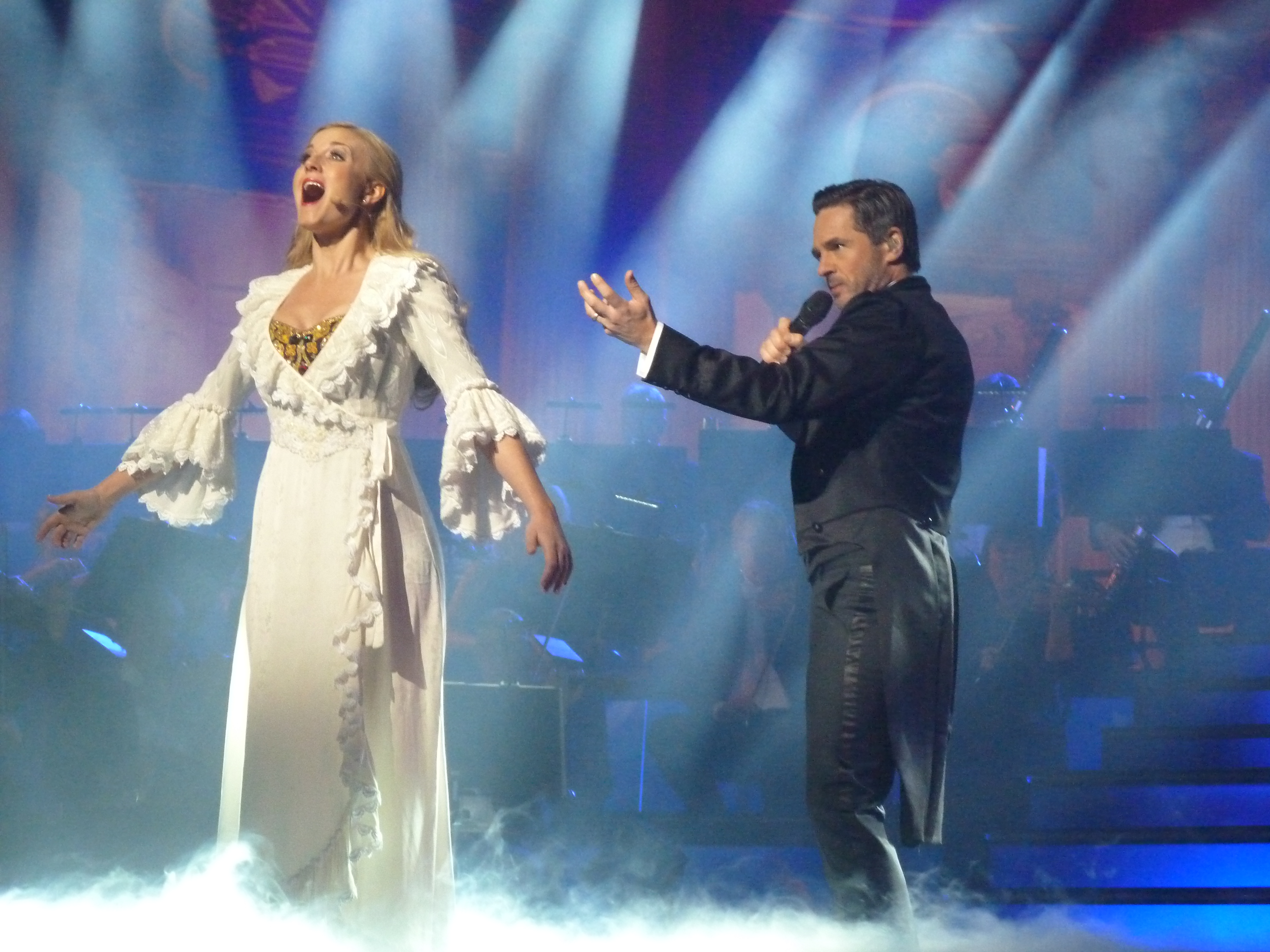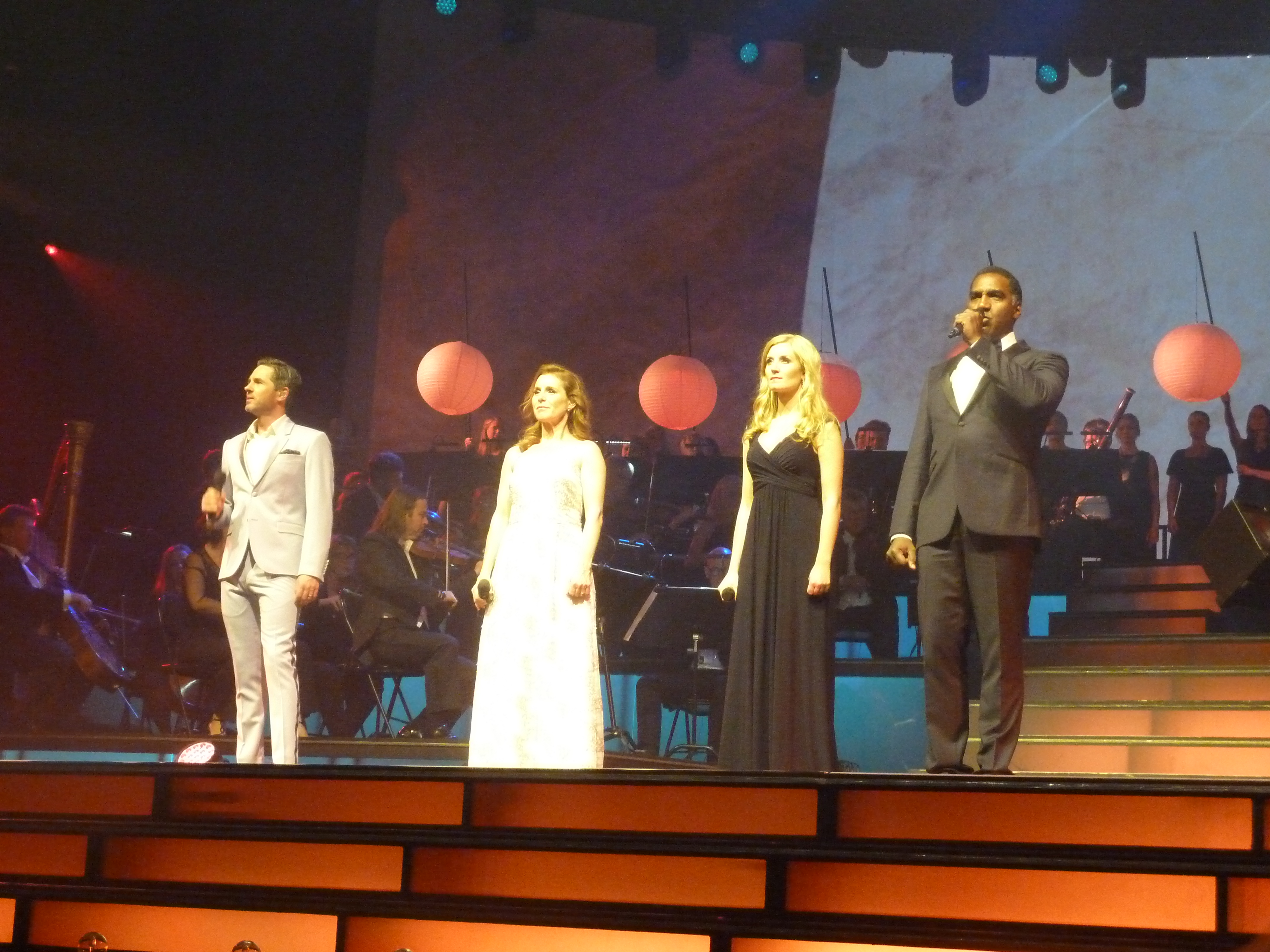 Men alla låtarna fanns med och det som är superbra bara växer och blir ännu bättre för varje gång. Resten är superbra det också. Det som för mig är det det svaga i showen är inslaget med West Side Story. Personligen är det inte någon av mina topp 3 musikaler, hamnar knapp in på topp 10 om jag ska vara helt ärlig. Och just här är sångstilarna för blandade. Musikal är musikal och ska inte sjungas operaaktigt om det nu inte är Phantom eller Love never dies, där visst operainslag är okey. Helen sjunger Anitas roll med perfekt musikalröst och inlevelse medan Emmi som Maria använder sitt mera operaregister och det funkar inte ihop för mig…