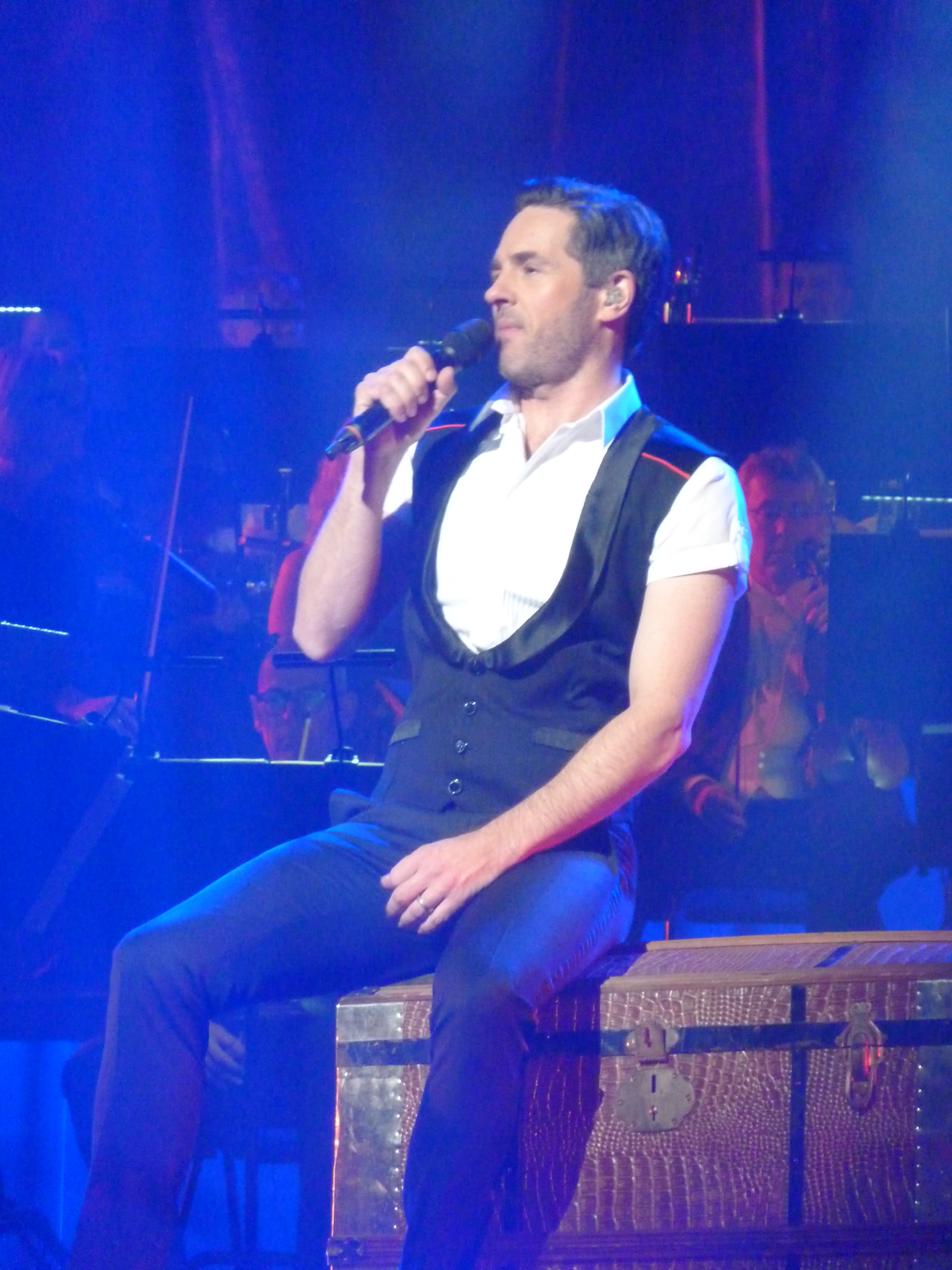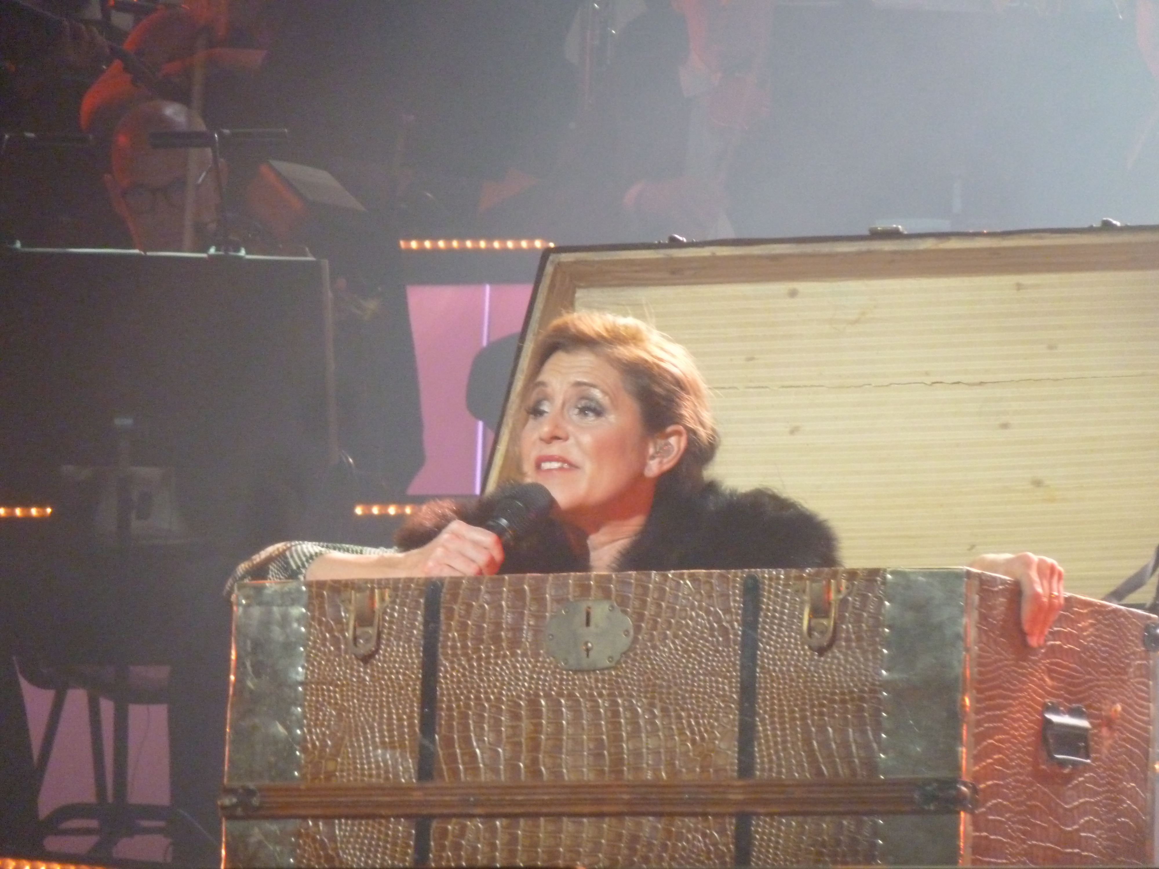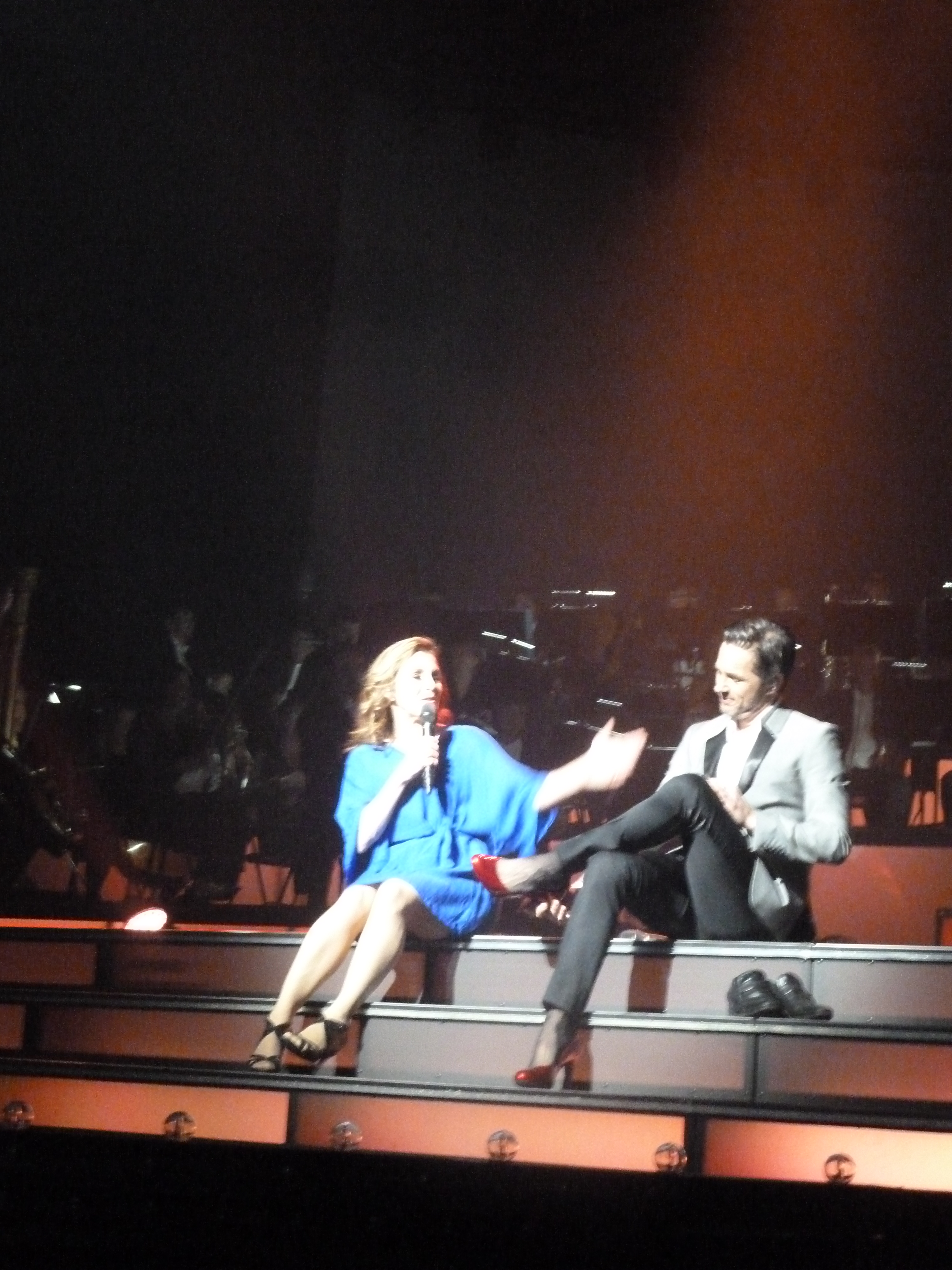 Peter bjuder på en rad av sina paradnummer från Why God Why till Phantom. Alltid lika bra och rysfaktor. Men trots att man hört dem många gånger och aldrig tröttnar så blir det ibland en ny version….Ikväll fick vi en liten speciell version av Getsemane, för en kort bit in så tappar Peter texten. Han fortsätter stegmässigt men orden kommer inte. Dirigenten tittar sig lite undrade över axeln, så börjar Peter sjunga igen. Där skulle han lyssnat lite på vad Helen fått tips av Marianne Mörck, ”Le och sjung, de vet ändå inte hur det ska vara”….Men även den bäste kan få en textblackout. Och den blev lika mäktig på slutet som vanligt. Gillar verkligen gitarrkompet i den!