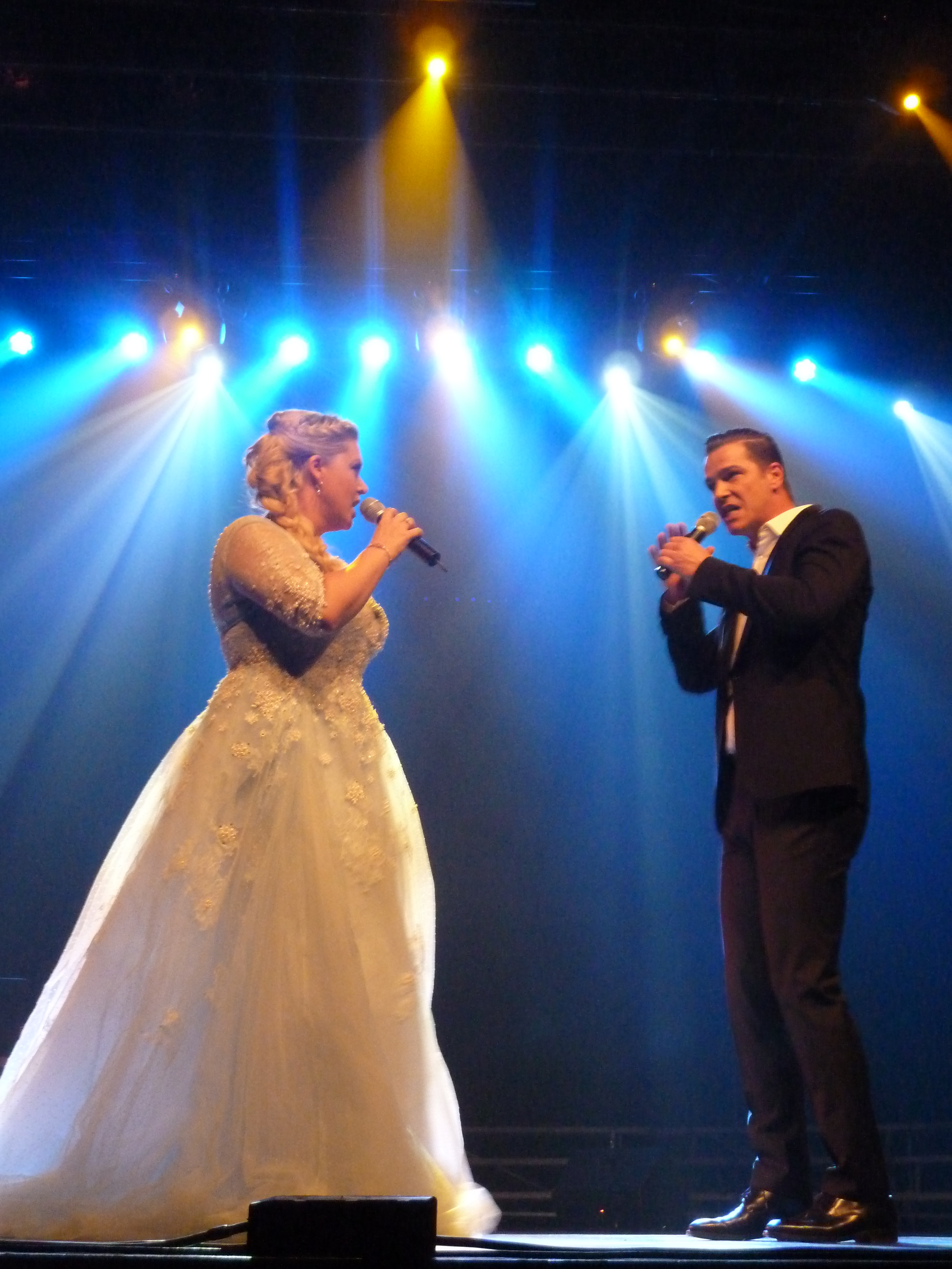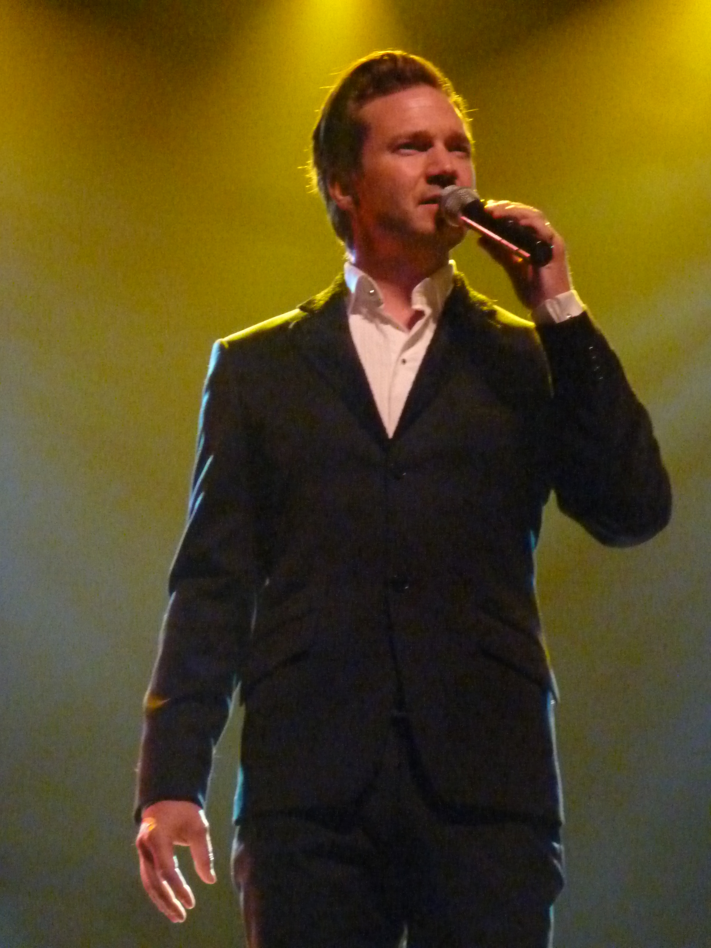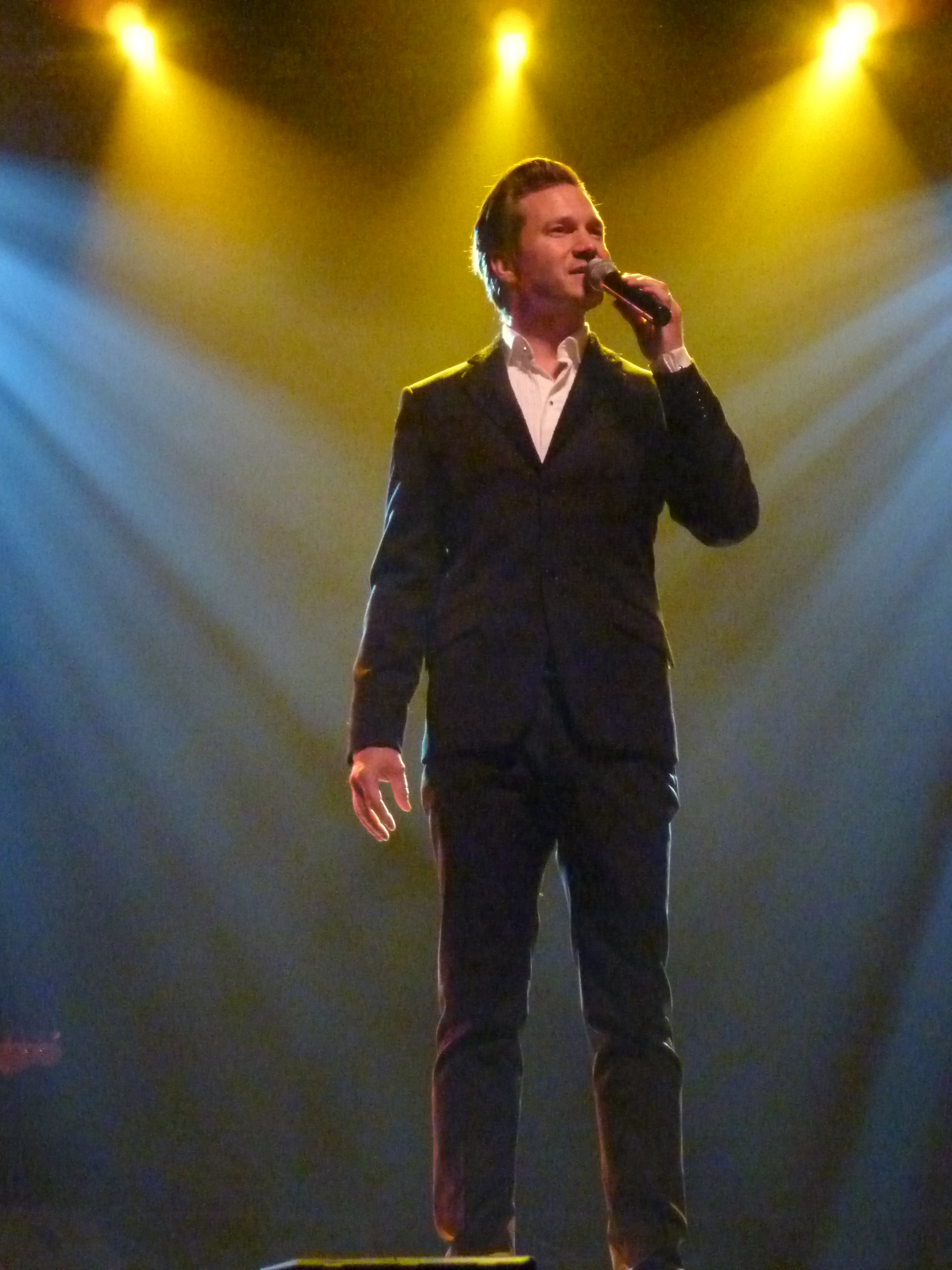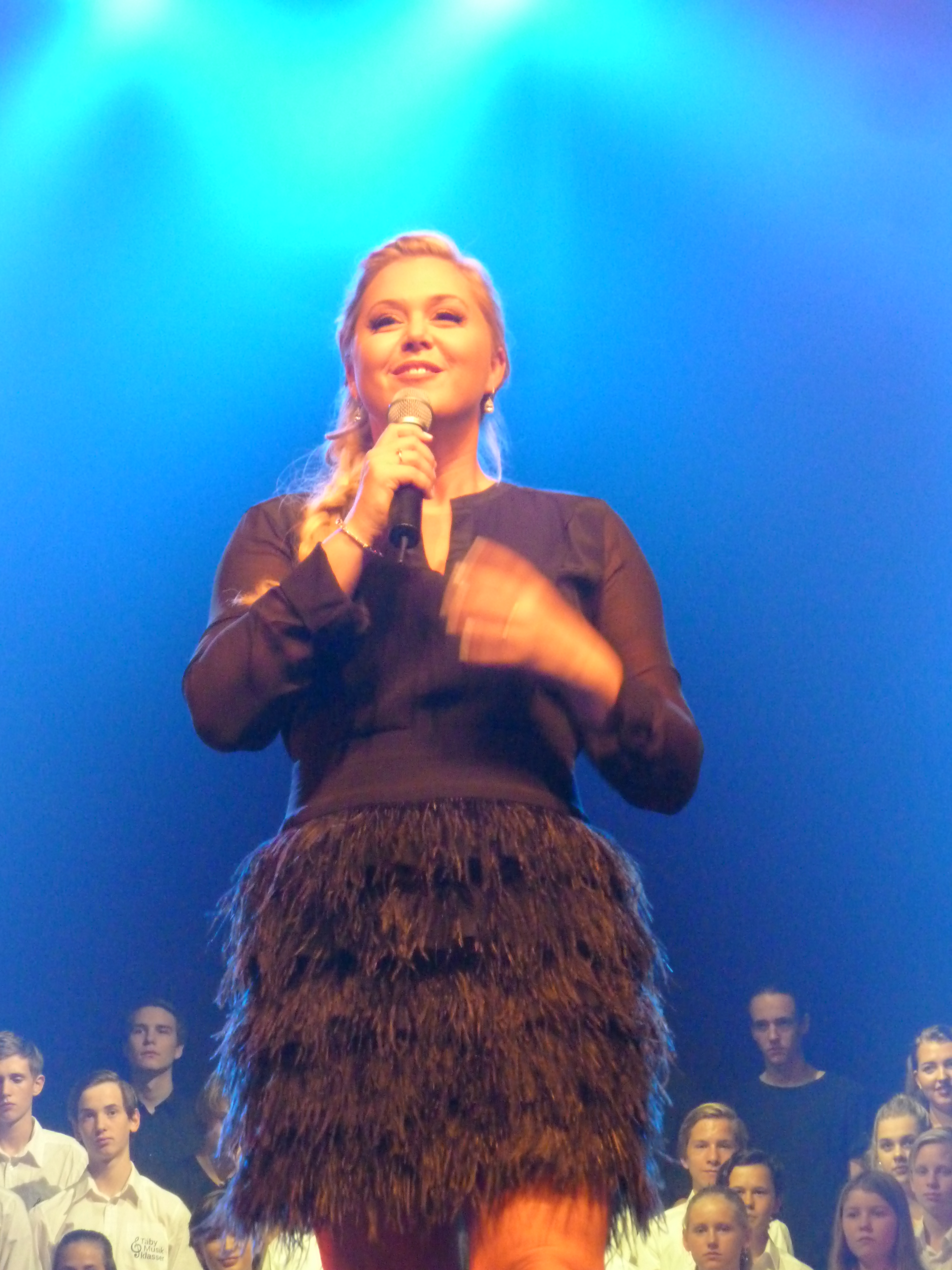 Ett av mina favoritinslag är när han ömsing och roligt, men med allvarlig underton, berättar om arbetet bakom uppsättningen av musikalen Livet är en schlager. Om den pinsamma readingen när Jonas Helgesson inte vågade berätta att han p g a av sin CP inte kunde uttala vissa konsonanter och ljud och hans del i readingen blev ett fiasko, Hur de sedan tillsammans gick igenom varenda replik och bokstav för att få bort det så Jonas kunde genomföra rollen i uppsättningen. Det avslutas med att Jonas sjunger ”Då vore jag inte jag” med en sån skörhet och inlevelse att det uppvägde att han inte har lika bra sångröst som Peter Jöback som sjöng den i musikalen. Sen återkommer han ett par gånger i föreställningen att vi alla måste hitta de ljud och konsonanter som vi kan uttala för att blomstra.