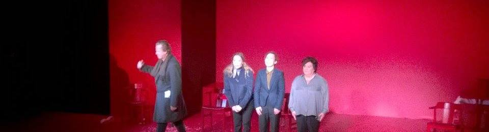 Scenen var ljussatt i rött och allt var väldigt rött på scen vilket gav det hela en varm inramning. Väldigt enkel scenogafi, några stolar, mikrofoner, ett par kuddar och ett täcke var väl i stort sett det som fanns.