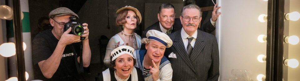 En solig och varm junikväll beger vi oss till Kärrtorp och Turteatern för att se ett publikep av Flaggan i Topp. Det är första gången jag besöker Turteatern och det blir en liten tidsresa tillbaka till 50talet när man träder in i foajen. Själva teaterlokalen är dock modernare. Föreställningen ska spelas på Krusenstiernska gården i Kalmar med premiär den 29 juni och fram till den 30 juli. Så ikväll får vi tänka att vi är på en utomhusteater en härlig varm julikväll med blå himmel och sol, där man ätit picknick innan isället för att slänga i sig en Propud i en foaje…. Att spela komedi på utomhusteatrar är något som har ökat de senate åren och just på Krusenstiernska gården firar man 10 årsjubileum. Har inte själv varit där men när jag var liten var det ett stående inslag på semestern att vi åkte till Helsingborg och gick på Fredriskdalsteatern där Poppe huserade. Kan tänka mig att det är lika trevligt och mysigt i Kalmar.