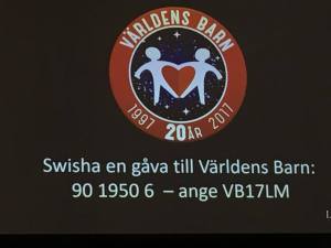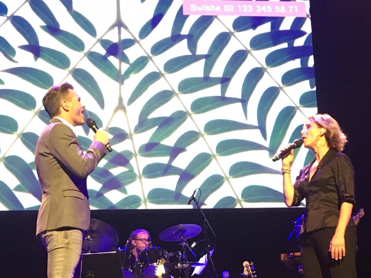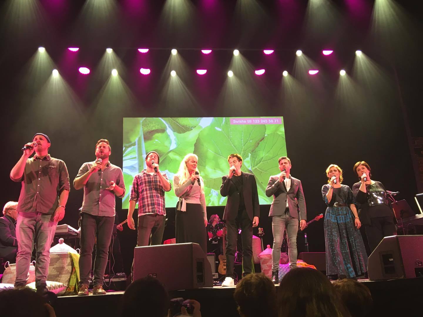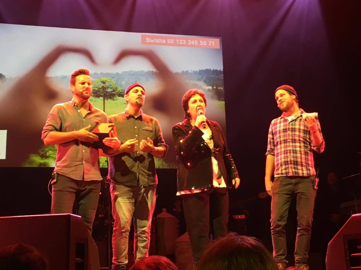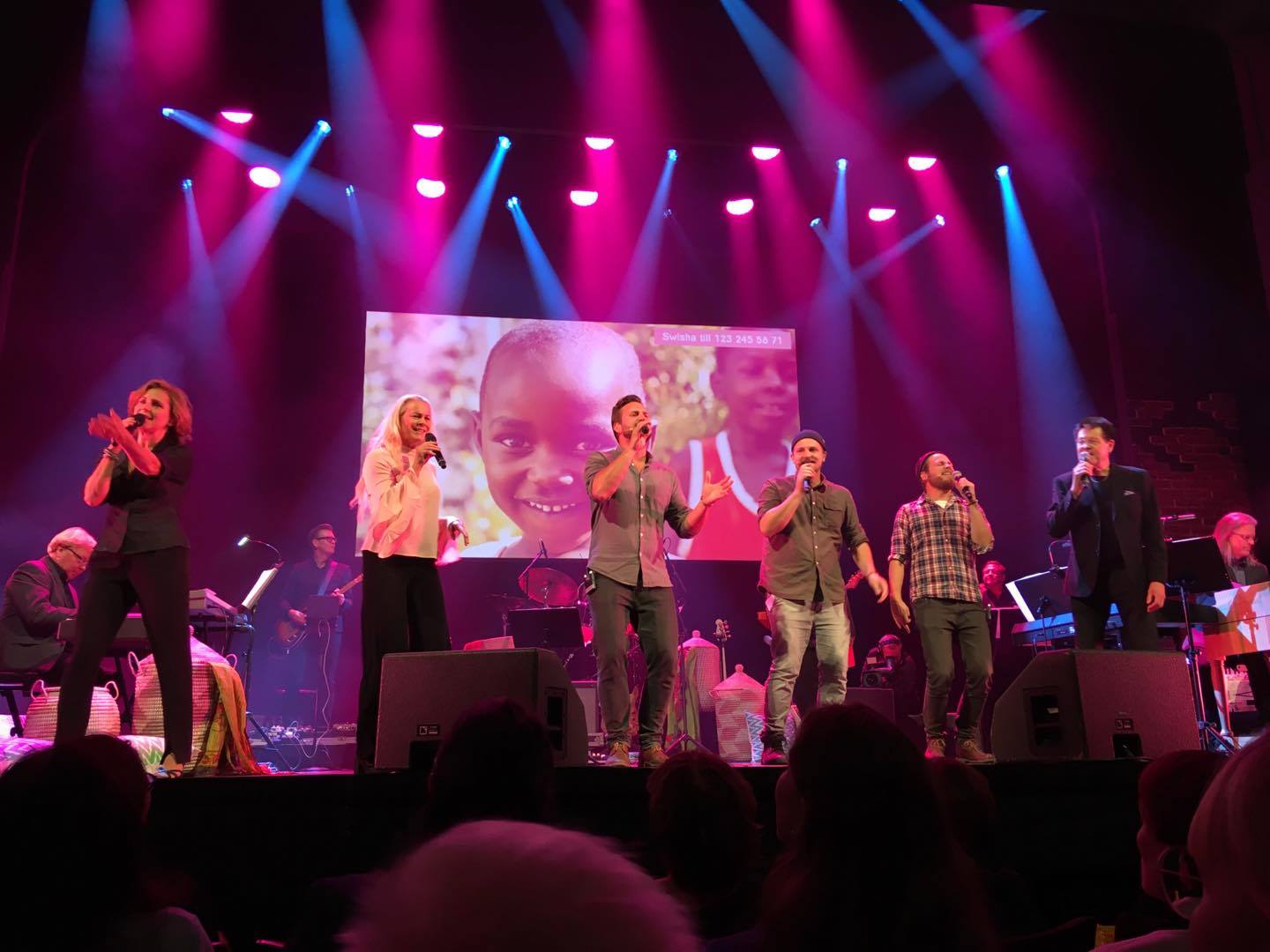 Efter en och en halv timme avslutades konserten med ”We are the world”. Väldigt passande när man samlar in pengar till Världens barn. Under konserten hade ca 45tkr samlats in och insamlingen pågår fortfarande om någon känner att man vill skänka en slant. För en gångs skull uppmande faktiskt Anders oss att ha på mobiltelefonerna så vi kunde swisha och han till och med filmade oss i publiken!