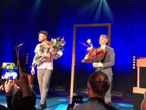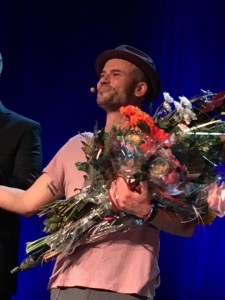 Väl inne på Maxim och i salongen spelas musik från Martins vinlysamling (?) och så släcks ljuset ner och Martin äntrar scenen iklädd sin röda skinnjacka och hatt. Att han kan sjunga det vet vi redan men ikväll visar han också hur bra på han är på att berätta en historia, Med värme, humor och självinsikt berättar han om sin uppväxt som blandas upp med flera av hans hits och även nyskrivet material. Är nog första gången jag har hört en låt med bara adresser i men sen är det nog få som har flyttat så många gånger som Martin under sin uppväxt! Martin har 11 syskon, 1 mamma och 4 pappor och en tidvis rätt turbulent barndom. När Martin var liten ville han inget hellre än att få bo kvar på ett och samma ställe och det stod alltid överst på hans önskelista. Han fick tidigt en Robin Hoodmössa och levde länge i en bubbla av att han skulle rädda världen och skydda sin lllebror David. Och precis som Robin tog han från de rika och gav till de fattiga…. Och man lider med killen som bevittnar en kidnappning på sin lillasyster och springer och springer allt vad han kan för att komma ifatt bilen men kommer aldrig ifatt. Allt för att sedan upptäcka att det var hans egen mamma som iscensatt det för hon var rädd för att förlora sin barn i en vårdnadstivst. En mamma som lite senare reser till London upprepade gånger med olika förevändningar att hon bara ska på konferens etc men som såsmåningom bara lämnar sin familj med ett brev om att hon har flyttat dit för hon har träfffat en fantastisk man. Förhållandet till brodern David har inte alltid varit lätt, en dag i leken skjuter han honom med en pilbåge men är mest orolig för att hans mamma ska höra hur David skriver. Och hur han sen försöker vara snäll men hur fel att blir och det bara blir värre och värre. Just den historian berättar han så roligt! Det är inte alla mormödrar som inte vill något mer än att få ett barnbarn som är bög. Trots 12 barnbarn så lyckades det inte, men schlager fick hon i alla fall av Martin. Och så sjunger Martin ”Las Vegas” som han vann svenska melodifestivalen med men som det inte gick lika bra med i den stora finalen. Han väljer att sjunga låten även att det var en galning som sköt ihjälp och skadade massa folk i Las Vegas kvällen innan. ”Men ingen galning ska få stoppa mig från att sjunga för min mormor”. Tycker han gör helt rätt i det så det och hela publiken verkar hålla med om det.