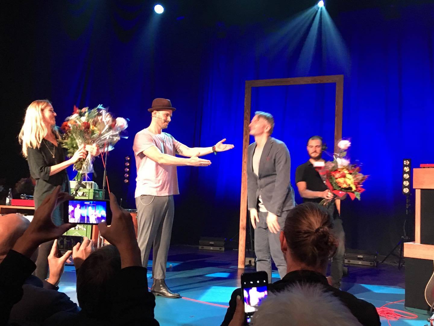 Att det är premiär för Martin Stenmarcks show Syskonkärlek märks redan inne på Fältöversten. Den ena kändisen efter den andra fördriver tiden med att ta ett glas vin eller bara snurra runt i gallerian i väntan på att det ska bli dags att dra sig till Maximteatern. Och det blir en kväll väl värd väntan!