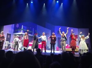 Eftermiddagens föreställning var den näst sista innan julen och på flera ställen fick vi lite extra skratt när de tappade bort sig i texten eller sa fel ord som ”köttbord” istället för julbord. Men det är alltid lika kul när det händer spontant och man får se hur de tar sig vidare. Vid nåt tillfälle fick Måns påminna dem om att de behövde komma vidare för det är en föreställning till ikväll. Märks att de har kul när de spelar och gillar att spela den här föreställningen. De får med sig barnen på precis rätt sätt och det är härligt när publiken är med på ett sånt sätt som det bara blir när det är många barn i publiken.