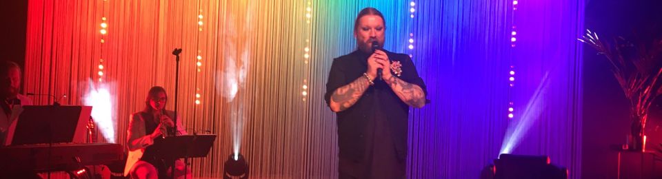 För drygt en vecka sedan var jag och såg Bette Midler i Hello Dolly och blev helt imponerad av hur hon ägde scenen och den utstrålning som hon hade,s om inget annat fanns när hon var på scenen. Den här känslan av hur någon/något kan komma in och äga en scen fick jag lite känslan av ikväll. Ikväll var det kärlek som strålade ut från scenen. När Rickard kommer in på scenen och börjar berätta om sin uppväxt och sin fantastiska mamma som lät honom vara som han ville vara så var det bara så mycket kärlek som strömmade ut och värmde hela publiken. För det Rickard står för är ju verkligen ett kärleksbudskap. Men kärlek är något som en del är rädda för och den sidan får vi höra flera exempel på. Berättelser ur verkligen som gör så ont att höra och så svårt att förstå. Hur kan 8 män i USA utföra ”corrective rape” på två kvinnor, mörda och bränna dem bara för att de älskar varandra? Vad är det som är så hotfullt i att två vuxna människor i samförstånd älskar varandra? När Rickard berättar det bränner tårarna bakom ögonlocken, för att lite senare vara tårar av glädje när han berättare om sitt registrerade partnerskap och att han var så lycklig så att han inte fick fram en ton i den kärleksförklaring han skulle sjunga för sin blivande make Anders. Så lite småskrattande när han berättar att man i USA har haft en särskild undersökning för att ta reda på vem den där Dorythy är som är spindeln i nåt nätverk för de homosexuella i det militära. Att lösningen är Dorythy i Trollkarlen från Oz tänkte de inte på…. Och hur han lördag efter lördag ”smög” in regnbågsfärgerna och kärleksbudskapet i Körslaget när han var med och ledde sin kör. Och hur de efter varje lördag kom och talade om att man får inte ha regnbågsflagga, inte målade naglar etc. Rickard har verkligen en fantastisk förmåga att berätta dessa historier så de griper tag i en på rätt sätt. Blev lika berörd av hans historier som av Eric Bibbs.