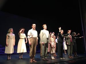 Men rätt snart stod det klart att det här var inte alls vad jag hade förväntat mig. Redan inlednigsvis får vi veta att i första akten ska man avhandla 10 karaktärer och 4 i andra akten. Och så satte de igång att skildra en person från det att den kom in i handlingen tills dess att den dog. Så nästa person och nästa. Det här gjorde ju att man inte fick någon bra koppling mellan de olika karaktärerna och hur relationerna var då allt fokus hela tiden låg på en person. Det blev väldigt endimensionellt och tråkigt. Det byggde inte upp någon spänning eller intresse. Ingen person kändes intressant och engagerande. Och inte hjäpte sceneriet eller kläderna till. Riktig tråkig scenografi med en vridscen och kläderna var färglösa och trista. Enda gången man fick lite Söderkänsla var när de rullade in ett rött staket som barnen lekte vid. Men även det skulle de förstöra genom att låta en kille ställa sig mot staket, dra ner byxorna och kissa mot staketet. De enda som fnissade lite åt det var två småkillar som satt framför som fnissade lite genant. Det må så vara att killar/män/gubbar även på den tiden var ouppfostrade och pissade mot ett staket, men det behövdes verkligen inte vara med för att få trovärdighet på något sätt. Om det fanns en liten trovärdighet i scenografin så försvann den snabbt när man tog in en stor uppblåstbar plastfåtölj! Det fanns inte på den tiden!
