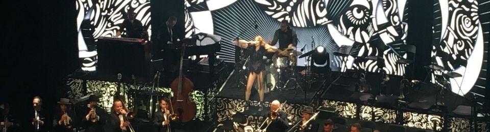 Showen ”That’s life” är gjord som en krogshow och det här är ett sista litet gästspel innan showen läggs ner och Jill tar sig an andra utmaningar. Showen är en hyllning till alla de musikaliska ikoner som Jill har lyssnat på sen hon var liten och inspirerats av. Det bjuds ett varierat låtutbud som vi förknippar med artister som t ex Frank Sinatra, Sammy Davis Jr, Cindy Lauper, Dionne Warwick, Diana Ross och självklart Dolly Parton. Vi får bland annat höra , That’s life, Jolene, 9 to 5, Time after time, For once in my life, New York New York, Fly me to the moon och Mr Bojangles. Det märks att Jill älskar de här låtarna som hon har valt till showen men alla var inte så kända som jag nog förväntat mig. Låten som var en hyllning till Elvis kan jag inte påminna mig att jag har hört förut och då är jag ändå uppväxt med en Elvisälskande mamma. Mr Bojangles är en fantastisk låt som man tyvärr tog fokus från Jills sång genom att en nycirkusartist spelar Mr Bojangles på ett sätt som bara är tramsigt och inte tillför sången något. Luftakrobatiktjejen var duktig. Personligen tycker jag dock att det hade känts ännu mer lyxigt och showaktigt om hon haft med sig några duktiga dansar på scenen. Scenen var läckert byggd och ljussättningen var verkligen imponerande. Snygga ljusspel som lekte över scenen och upp i taket. Inledningsvis var det ett bildspel över Jills live, men från vår rad så såg man bara halvakorten så det gav inte så mycket tyvärr.