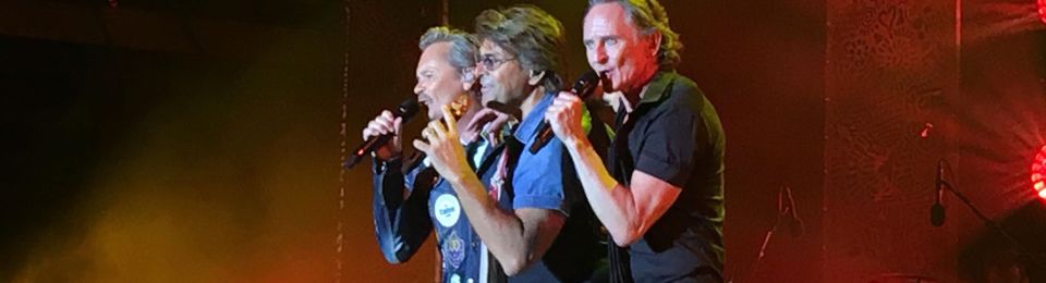 Solliden är klassisk mark för Allsång och vilka är bättre på att leda allsång än GES? Inga allsångshäften eller textremsor behövdes. Publiken sjöng med från första tonen till den sista. Otrolig stämning! Publiken bestod mest av de som har vuxit upp med de här killarna, eller männen ska man väl säga. Niklas fyllde 60 för en månad sedan och i november är det dags för Orup att fylla 60 och Glenmark 65!! Men det märks inte alls. Det här är killar som åldras med stil! Niklas lovad inledningsvis att det inte kommer att komma en enda ny låt och en sån här konsert vill man inte ha låtar från någon ny skiva som ingen har hunnit lyssna in sig på, nej alla var här för att höra de gamla låtarna som ”En jävel på kärlek”, ”Upp över mina öron”, ”Hon har blommor i sitt hår”, ”Magaluf”, ”Mare Mare”, ”Regn hos mig”, ”Ingenting minner om dej”, ”Händerna på täcket”, ”Sångerna om sommaren”, ”Om”, ”Sista morgonen”, ”Oslagbara” och så självklart ”När vi gräver Guld i USA”. Det är så härligt när man hör den här typen av låtar och inser att man kan hela låten fast man inte har hört dem på flera år.