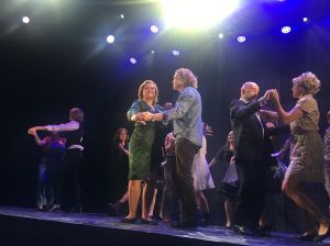 Det var med stor spänning som jag begav mig till den första publikrepetitionen. Vi hälsades välkomna av regissören Hans Marklund som berättade vi skulle inte bara få se huvudshowen utan även förshowen som från och med torsdag kommer att pågå då och då under middagen som äts innan. Kvällen inleddes med att vi fick se alla delar i förshowen. Jens Hultén agerar som konfrencier och presenterar de olika numren. Lite krystade skämt så det får de gärna slipa på till premiären på torsdag. Marianne agerade operadiva, Elin König Anderssson visade upp sin fantastiska kroppskontroll, styrka och vighet i ett akrobatiskt nummer. Frida, Elin och Karl gjorde en 50-60tals inspirerad version av ”Higher” och Gunilla en omarrad ”Under my skin” som båda var väldigt bra.