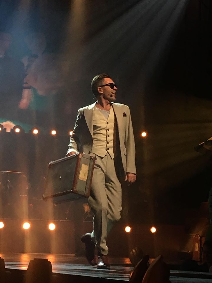 Jag gillar ju att ha närheten till artisterna och inte någon som skymmer, men det är ju på bekostnad av den fantastisk ljussättningen och bildspelet som är runt om hela salongen. Den helheten får man bättre om man sitter på läktaren, men inte för högt upp. Men när något är så bra som den här föreställningen är så går i alla fall jag flera gånger och då kan man ju välja att se den från olika platser och man får en ny upplevelse varje gång, man ser någon detalj man missat tidigare och en annan upplevelse av alla nummer. Just de låtar som är lite känsligare och ska beröra mer, de upplevs absolut starkare när man sitter nära och kan se Peters ansiktsuttryck. Avslutningen med ”Stockholm i natt” är ett sådant tillfälle.
