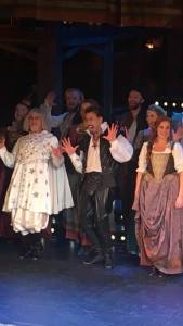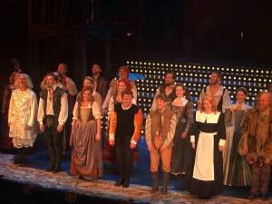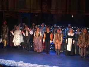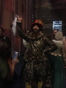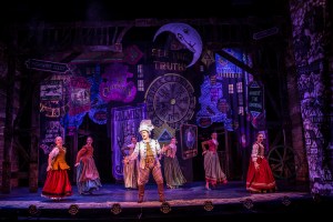 Nu har den blivit musikal med nyskriven musik av Carl Bagge, men musiken som alla känner igen från filmen finns med. Henrik Dorsin är berättaren och han hälsar oss välkomna redan när vi kommer och ska gå ner till salongen. Flera andra i ensemblen går också runt och hälsar välkomna. Trevligt! Per Åhlin som tecknade filmen är produktionsdesigner och det märks.