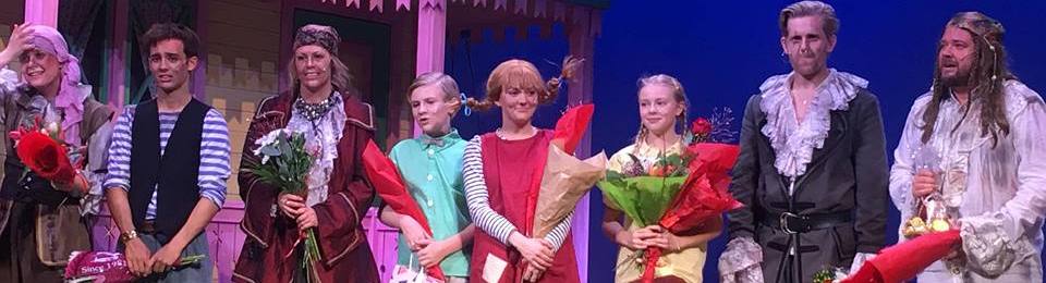 Angela Rautalin spelar Pippi med härlig energi, glädje och är så där kavat och självsäker som Pippi ska vara. Meleah Myhrberg och Oskar Norgren är charmiga i sina roller som Annika och Tommy. Kristian Ståhlgren spelar Pippis pappa som de elaka sjörövarna Blod-Svente (Anna Hallgren) och Jocke med kniven (Martin Hallgren) har fångat. Till sin hjälp att hålla Pippis pappa fånge har de sju andra sjörövare. Eftersom det är en familjeförställning är sjörövarna lagom skrämmande och elaka. Caroline Erikssons kostymer håller sig väl till hur man tänker sig att alla karaktärer ska vara klädda och se ut. Tommy och Annika i pasteller och sjörövarna med vita skjortor, skinnvästar och bandanas, och Pippi, ja hon ser ut precis som hon ska med sina röda flätor, förkläde och olikfärgade strumpor.