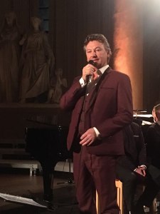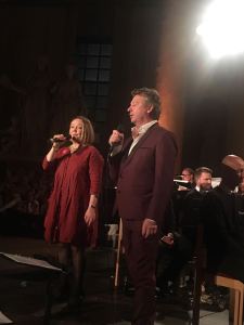 Swedish Central Band (blåsorkester) inledde med ett julmedley. Sen hälsades vi välkomna av Clive Adams. Förutom Anders var även Tua Dominque gästartist tillsammans med sitt kompband bestående av Anders Ellman, Marcus Möller och Jonas Dominique. De bjöd på flera härliga julsånger ”The Christmas Song”, ”Let it snow”, ”Have yourself a merry little Christmas” och ” A child is born”. Alla i härliga jazziga arrangemang. För alla musikalälskare så är det säkert flera som såg Tua som Christine i Fantomen på operan när den gick på Oscars.