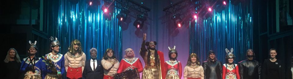Men den riktigt stora behållning är Camilo Ge Bresky. Har tidigare sett honom i Book of Mormon men där hade han inte en lika framträdande roll. Men som transvestiten Frank n Further får han spela ut hela sitt register. Camilo är rätt stor i sig själv kroppsmässigt men med ett par höga platåskor blir han gigantisk mot de övriga på scenen, vilket förstärker hans karaktär. Hans kroppsspråk är väldigt feminint och den kontrasten är så perfekt. Mina tankar gick direkt till rollen Lola i Kinky Boots. Camilo har otroliga röstresurser och även om sångerna i sig inte var några som jag kommer att nynna på efteråt blev jag djupt imponerad av honom. Suveränt bra röstmässigt och skådespelarmässigt där han levererade från minsta blick.