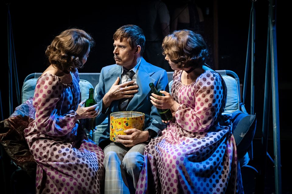 Magnus Roosman spelar Hugh och han lyckas med att visa hur osympatisk Hugh är. Det samma gäller för hans vänner som är lika självupptagna som han själv. Peter Engman spelar den sliskige Arnold som gärna tafsar på Nancy som inte alls uppskattar det men som inte vågar säga ifrån. Men en av mina favoritscener är när de bägge Nancy som spelas briljant av Helen Sjöholm och Vanna Rosenberg hämnas på Arnold under en grillfest. Arnold tafsar som vanligt på Nancy och då kommer bägge Nancy fram och sätter sig bredvid honom. Berusad som han är tror han förstås att han ser dubbelt. Så det finns en och annan scen som lockar till skratt.