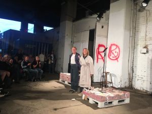 Teatern Under Bron ligger under Liljeholmsbron och är inte någon vanlig teatermiljö. Nej här är det rufft, grå betong lite färgsatt med graffiti och inte ett ställe som man tänker sig en teater. Precis bredvid ligger Tanto med sina gröna gräsmattor, bad och som vilken sommarstadsidyll som helst. Men några veckor under sommaren så blir även platsen under bron en spännande och trivsam oas med en liten pub och food truck där folk samlas för att spela spel och pingis. Det anordnas Quiz, bio och så sätter Teatern Under Bron upp en pjäs. Min kompis som aldrig varit där och inte visste om det sa, ”det känns som jag har förflyttats till Berlin, vilket häftigt ställe och vilken härlig stämning här är”.