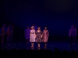 När Häxorna i slutet av första akten flyger ut över publiken i sina lila eleganta klänningar under en middag hos Daryl då lyfter publiken jubel nästan taket så häxorna kan flyga ut. Stående ovationer och massa blommor blev det i applådtacket.