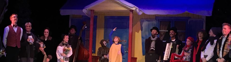 För åttonde året sätter Intiman upp en Astrid Lindgrenmusikal för hela familjen lagom till jul. I år är det dags för Pippi firar jul och enligt 6-åringen jag hade med mig hade de prickat helt rätt för hon är inne i en Pippifas just nu. Scenen är julig med snö, ett träd fullt av julklappar och ett snöklätt Villavillekulla som omvandlas till skola eller Tommy och Annikas hem ibland. Scenarbetarna får möblera om för fullt i det lilla huset och det sker så snabbt och smidigt så det inte märks alls för publiken. ”De är så snabba så de trycker nog på en knapp” sa mitt sällskap och hon var väldigt imponerad av de stora pepparkakorna hos Pippi och hur fint julpyntat det var hos Tommy och Annika.