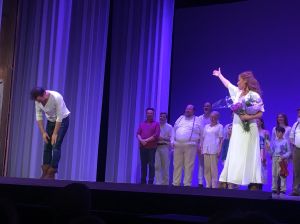 Vare gång jag ser den här föreställningen så slås jag av hur makalöst bra den är. Vilket episkt verk som spelas på scenen. Det har verkligen allt, skratt, gråt, lycka, glädje och så många karaktärer som man blir berörd och engagerad i på något sätt. Fredrik Kempes musik är helt magisk och så svensk och klassisk. Och allt framförs av väldigt duktiga musikalartister. Philip Jalmelid gör ju sin livs roll som dirigenten Daniel Dareus. Tuva B Larsen med sin ljuva röst med en sån underbar klang i är verkligen Lena. Christopher Wollter är så grym som Conny (men jag saknar varje gång en sång med honom). Och det spelar ingen roll om det är Björn Kjellman eller Morgan Alling som spelar Arne, bägge är lika underbara på sitt eget sätt. Och idag var det Björns Arne som hoppar runt med pjäxa. Anders Ekborg som Stig berör så mycket och ingen kan ju förmedla smärta och förtvivlan som han i sin sång och sitt skådespeleri. Rikard Björk som Thore blir jag lika imponerad av varje gång. Så övertygande i sin tolkning av Thore och jag blir lika varm i hjärtat av duetten mellan honom och Tuva. Så mycket glädje och kärlek dem emellan, på det allra finaste och renaste sättet. Och så mitt i allt det här får då Annica Edstam den stora utmaningen att för en dag gå in och ta över som Gabriella. Och hon gör det fantastiskt bra. Det märks ju verkligen att hon är musikalartist. Precis som Kristin och även Helen Sjöholm som är Gabriella i filmen, så kan hon ju det här med att kombinera sång, känslor och skådespeleri så det berör och skapar en trovärdig Gabriella. Man blir berörd av hennes livsöde. Det är en konst att balansera känslor och inte spela över i miner och gester och Annica har den balansen. Och en röst som bär både Gabriella sång och Stjärnorna till de höjder som sångerna förtjänar. Samspelet mellan henne och Christopher Wollter är också väldigt starkt och gripande. Hon är verkligen den skrämda misshandlade kvinnan som växer och reser sig. Så jag kan bara säga att jag är riktigt glad, nöjd och lycklig över att ha fått se Annica som Gabriella.