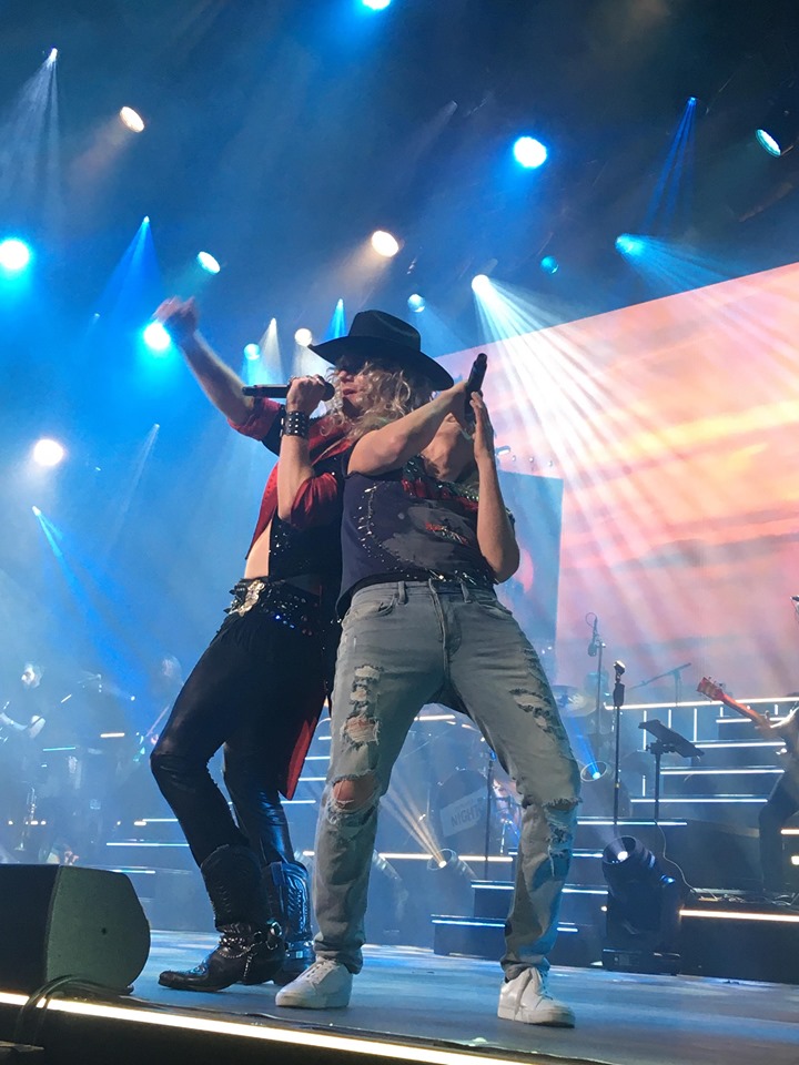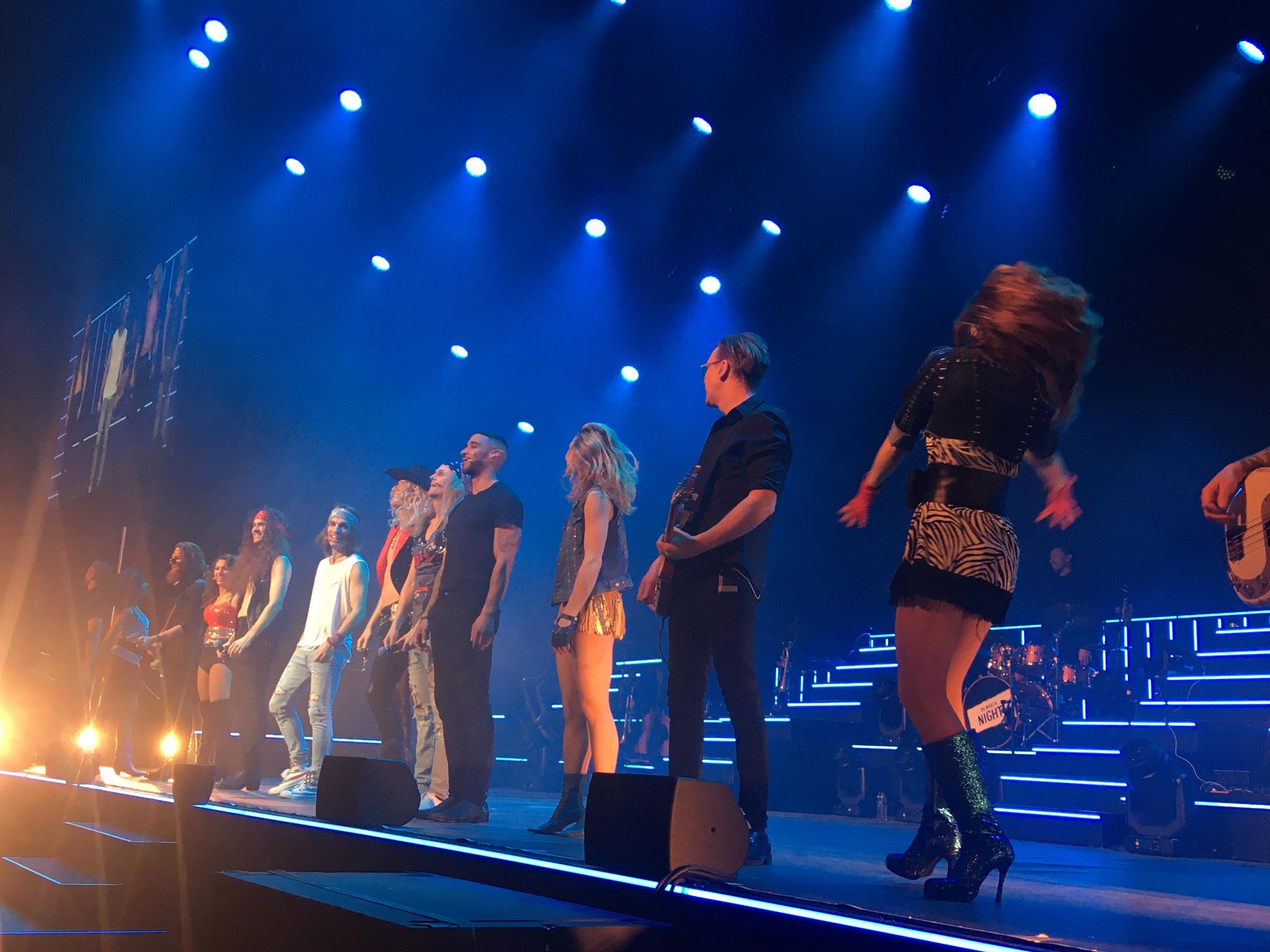 Det är en härlig blandning av storslagna nummer med dansarna, kraftfulla solosånger och ett magiskt akustiskt nummer med balladerna från Rock of Ages och hela Globen lyses upp som en stjärnhimmel av publikens mobiltelefoner. Showen är snyggt ljussatt rakt igenom. Killarna backas upp av ett bra band under Marika Willstedts ledning.