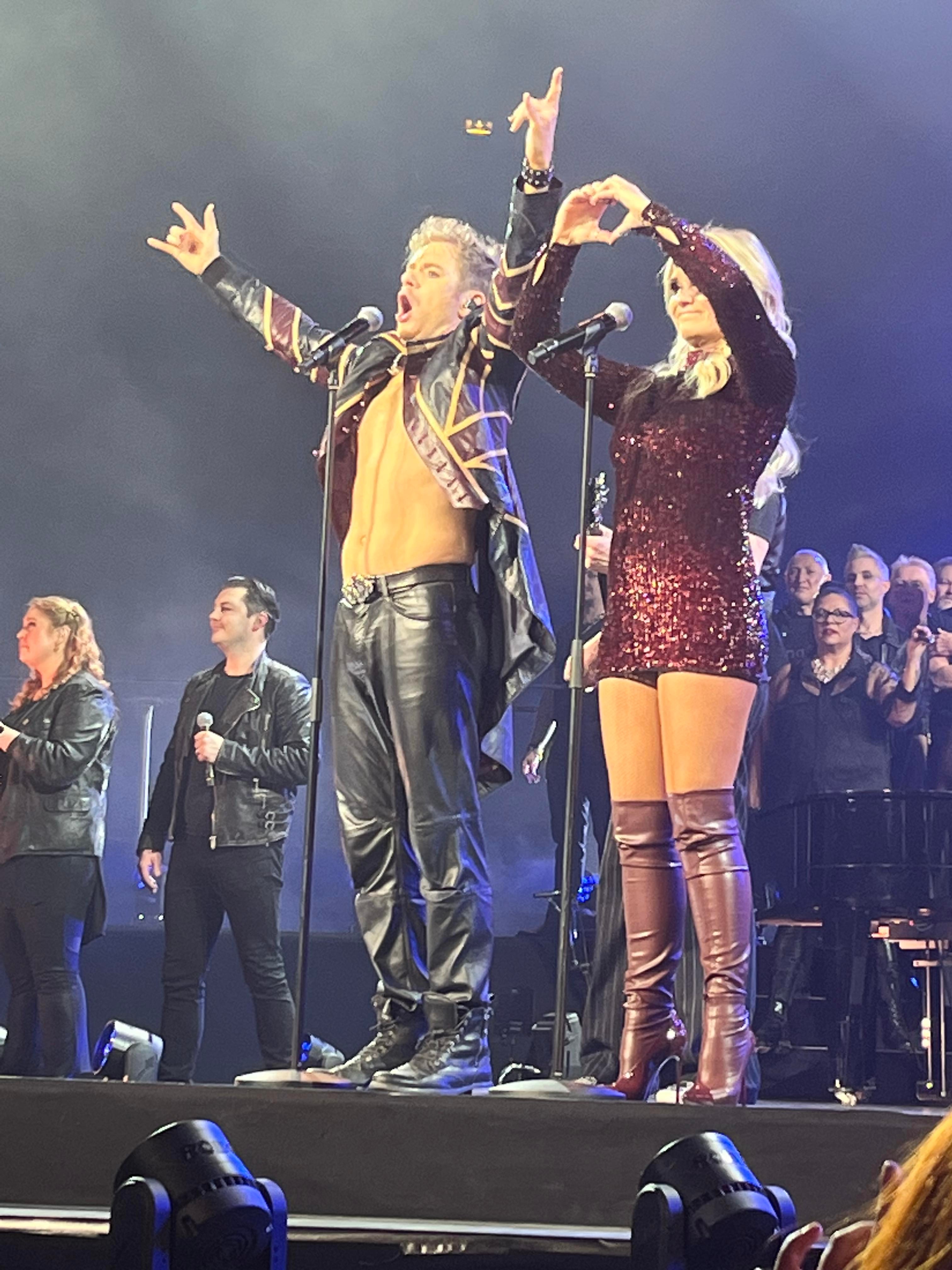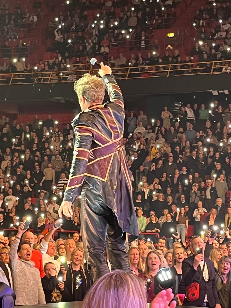 Att Peter älskar Queen är det ju ingen tvekan om. Han kan sin Queen utan och innan och plockar fram mindre kända låtar som 39 och gör den med lika mycket kärlek som när han sjunger Bohemian Rhapsody tillsammans med Jenna och hela kören. Då är det helt magiskt. Det är underbart att se hur mycket han njuter av det här och hur han står i sin skinnrock med engelska flaggan och bara tar in hur hela arenan lyses upp av mobiltelefonerna i slutet av konserten.