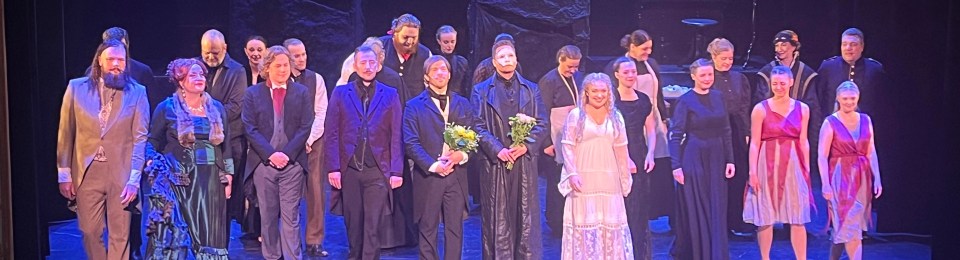 Här har man fått hitta egna lösningar för det är en mindre scen än den vanligtvis spelas på och det går inte att göra samma tekniska lösningar. Budgeten finns inte där heller för det. Men det gör att musikalen i sig kommer fram på ett helt annat sätt, man förtrollas inte av kandelabrar som kommer upp ur golvet, en gondol som glider fram i dimman eller en utsmyckad stor elefant utan här förtrollas man av John Martin Bengtsson (Fantomen), Hanna Ulvan (Christine), Sebastian Lamberth (Raoul), Anna Hammarqvist (Charlotta) och de andra på scenen och musikerna i orkesterdiket under ledning av den makalösa Julian Bigg. Flertalet på scenen har andra jobb men tillsammans på scenen lyfter de varandra och blir fullfjädrade musikalartister. John Martin har en röst som är så perfekt och han har en enorm inlevelse i sin tolkning av Fantomen,absolut en av de bästa jag har sett. Hanna Ulvans ljuva röst förtrollar oss alla i publiken.