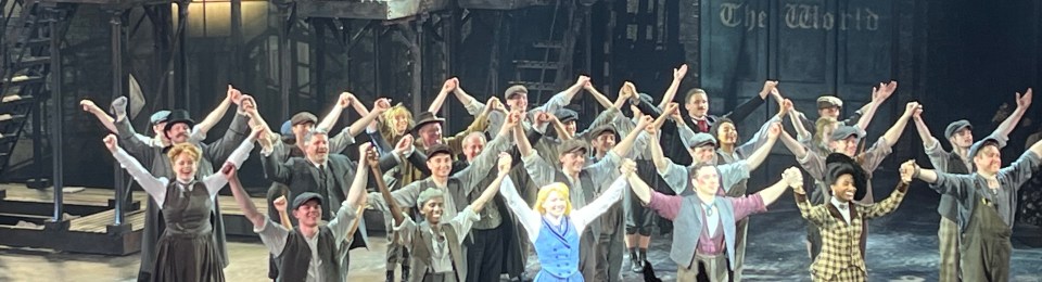De hade mig redan vid Hello! Teatern var häftig, mer en stor tv-studio än en teater. Stor entrehall och scenografin började redan när man gick in i salongen, tvätt som hängde, hängmattor som de sov i, ja hela salongen var en del i föreställningen. Sen när det började var det tidningsbud i överallt, en kom ner längst bakifrån på en vajer och flög över hela publiken. Så mycket att titta på. Sen kom dansen!!! Det ena dansnumret häftigare än det andra och de var så duktiga!!! Koreografin var magisk! Det märktes att flera av dem var balettskolade, typiska baletthopp, piruetter som bröts av med volter, breakdans och så ett magiskt steppnummer på det! Ja det var sång också även om den lite överskuggades av dansen. Men några riktigt bra sånger också. Historien var riktigt bra också, lite David och Goliat. Tidningspojkarna som kämpade att få skäligt betalt av tidningsmagnaten Pulitzer. En söt kärlekshistoria fanns invävd också, liksom en cool liten kille som påminde om Gavroche i sin kaxighet.