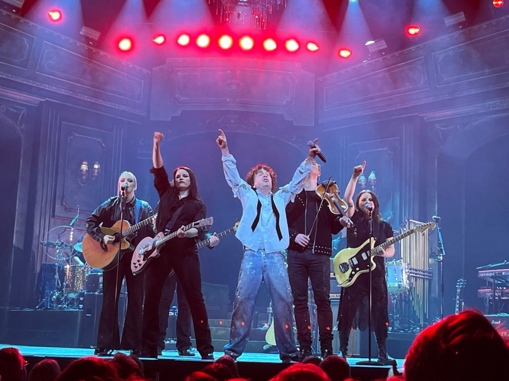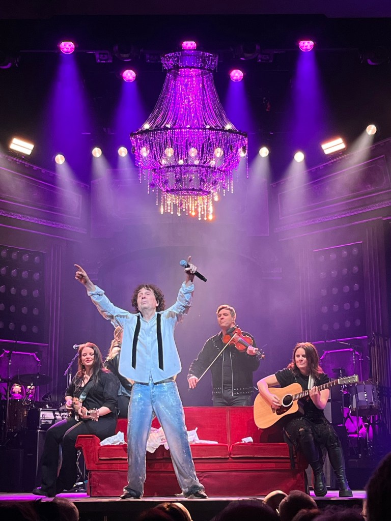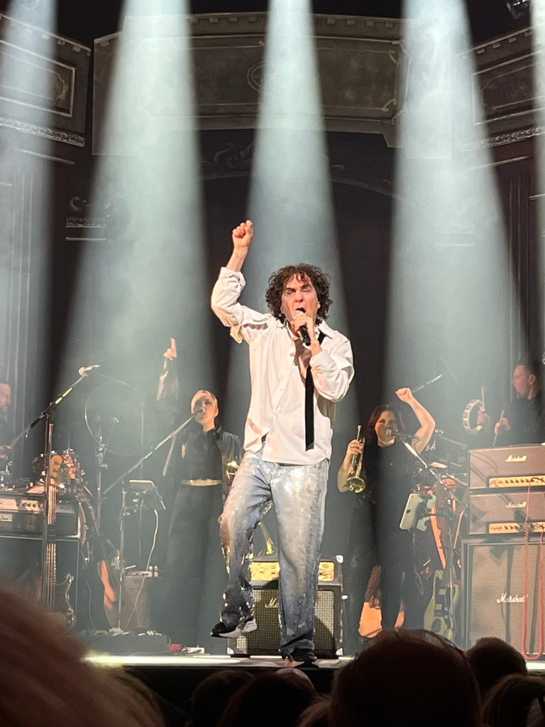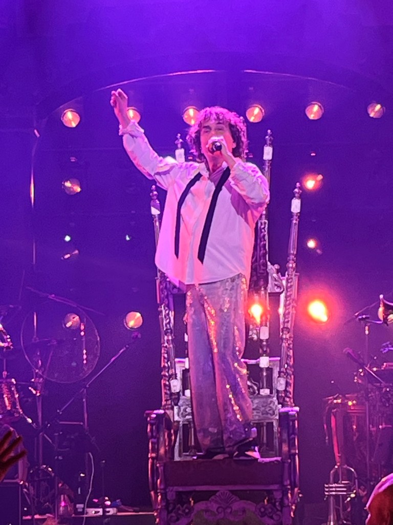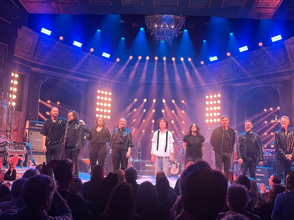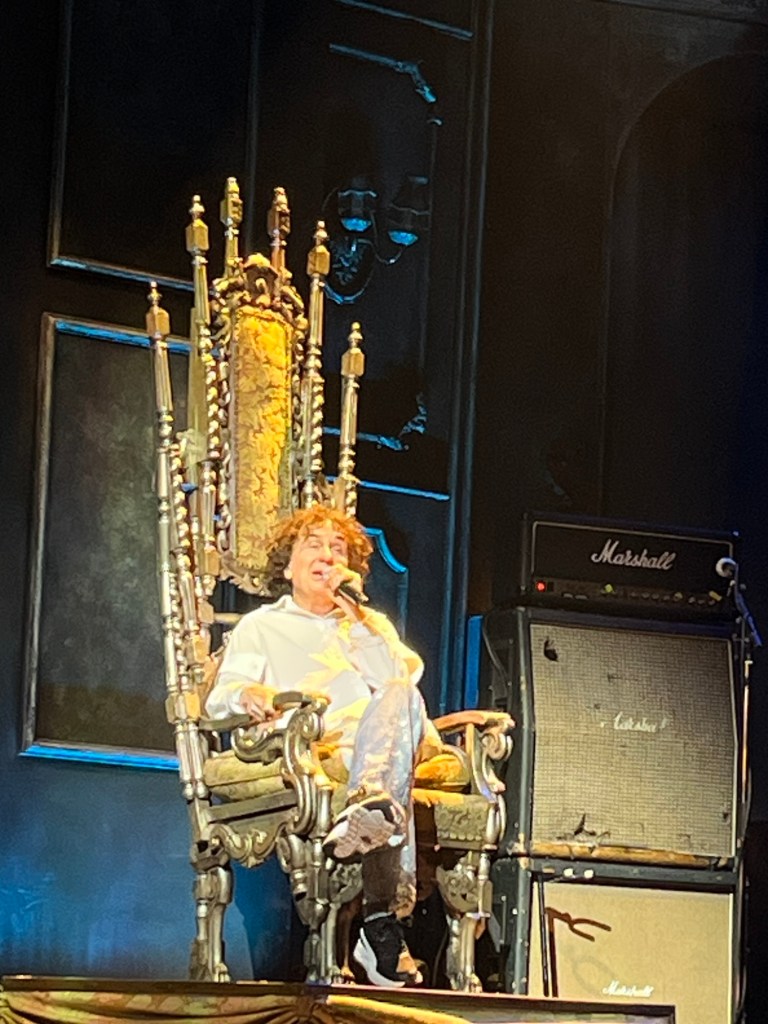 Musikerna är fantastiska och verkligen en del av showen. Supersnygg scen, som ett rum i en flott Östermalmvåning eller en sal på slottet med kristallkrona och tron. En tron där kund Magnus slog sig ner och höll finurliga tal till publiken om sitt liv som kung på scenen med dagsaktuella pikar till digitalisering och Elon Musk.