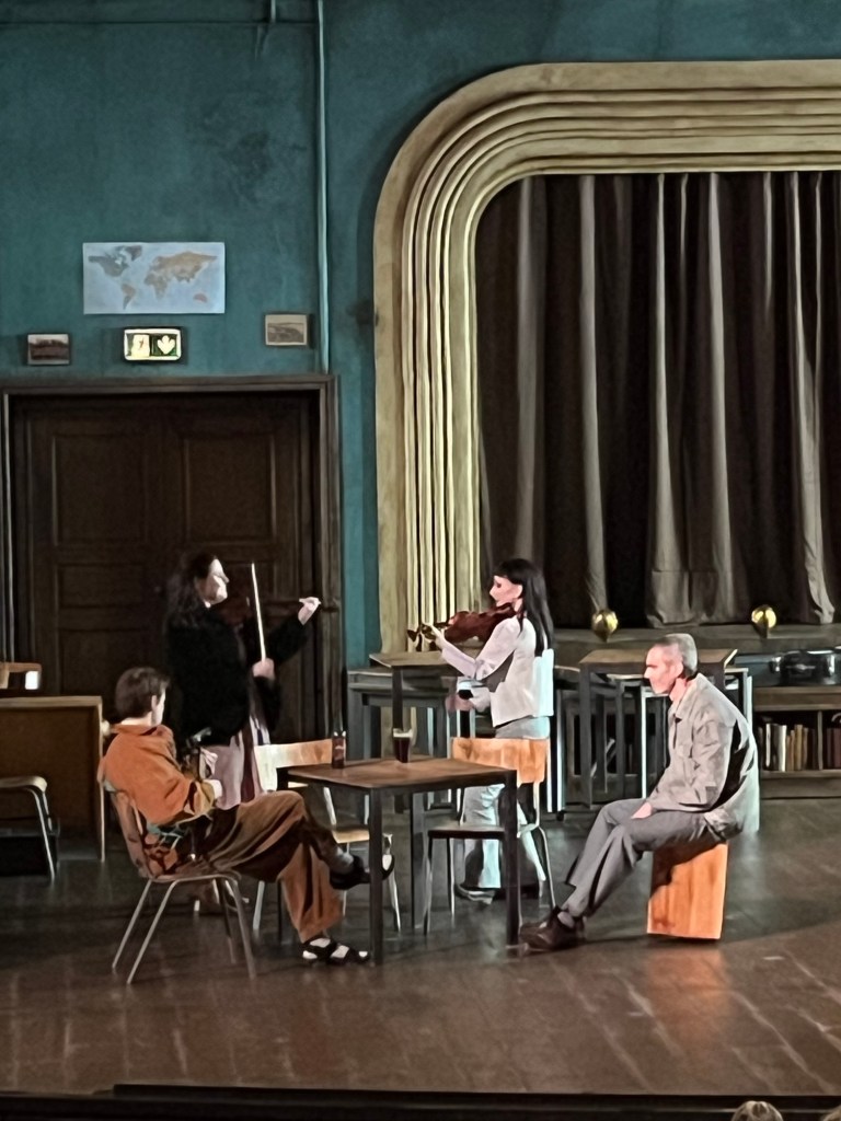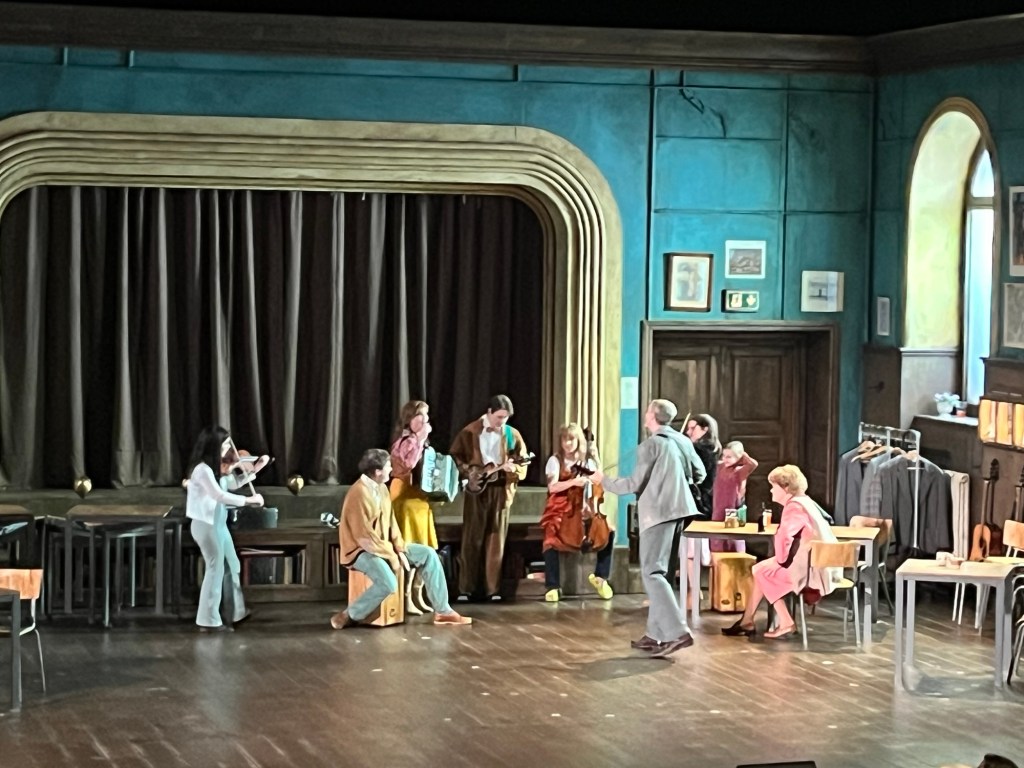 I Once är musikerna och ensemblen samma personer och på scenen hela tiden mer eller mindre. Det är imponerande hur väl de både agerar och spelar olika instrument. Men även här innebär den stora scenen att avståndet mellan skådespelarna blir större, särskilt när de mer agerar musiker och står nära väggarna, och det minskar närvarokänslan.