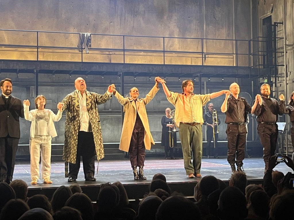 I första akten är den stora orkestern på scenen och blir som en del i handlingen när skådespelarna rör sig runt dem i kyrkan. I andra akten har de flyttats bort från scenen. En lite gladare stämning uppstår när elever från bland annat Adolf Fredriks musikklasser rusar in på scenen i första akten. Storslaget med en barnkör.