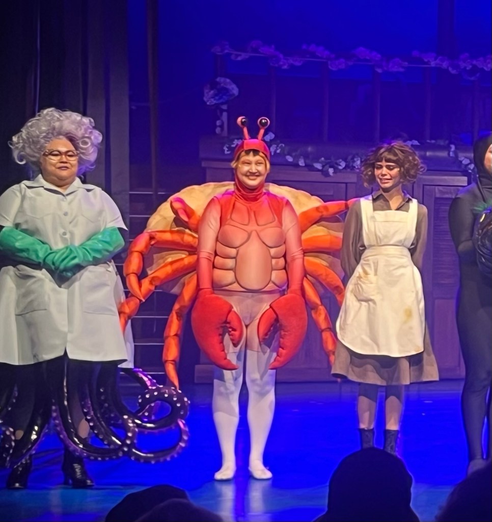 Men ingen Lilla Sjöjungfrun utan krabba Sebastian. Lisa Hu Yu förkroppsligar Sebastian på ett underbart komiskt sätt.