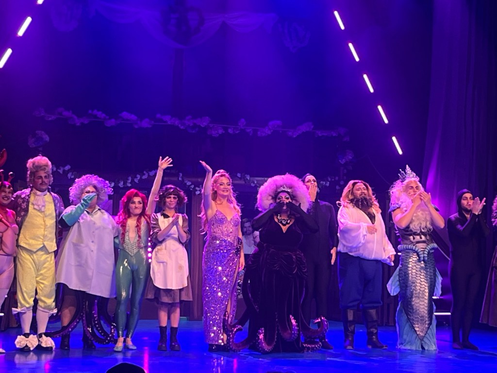 Sofia Jung är helt underbar som Ursula, vilken röst och komisk talang! Har sett henne i andra mindre roller men här tar hon, bokstavligen och rättmätigt, jättestor plats i sin enorma och häftiga bläckfiskklänning. Maja Döblings kläder är helt underbara och Anna Anderssons mask och peruk fulländar det. Hur kul har inte de haft det på jobbet när de skapat dessa kreationer?