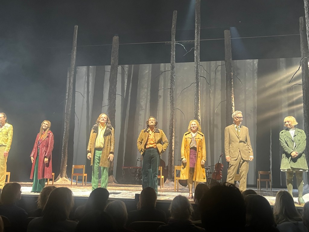 Andra aktens scenografi tilltalar mig mycket mer. Ett vintrigt skogslandskap där snön faller då och då. Men skavet i handlingen fortsätter. Otrohet, splittrade par och nya par bildas. Här är det Sången de spelar när filmen tar slut som är höjdpunkten och publiken dras med. En låt med text som hade varit perfekt för att vara avslutning ”lamporna tänds och publiken går ut” för där har de publiken i en glädjekänsla. Men avslutet blir akustisk och lågmält och vi lämnar med en liten tom känsla. Förhoppningsvis kan det ha finslipats från det här publikrepet till premiären.
