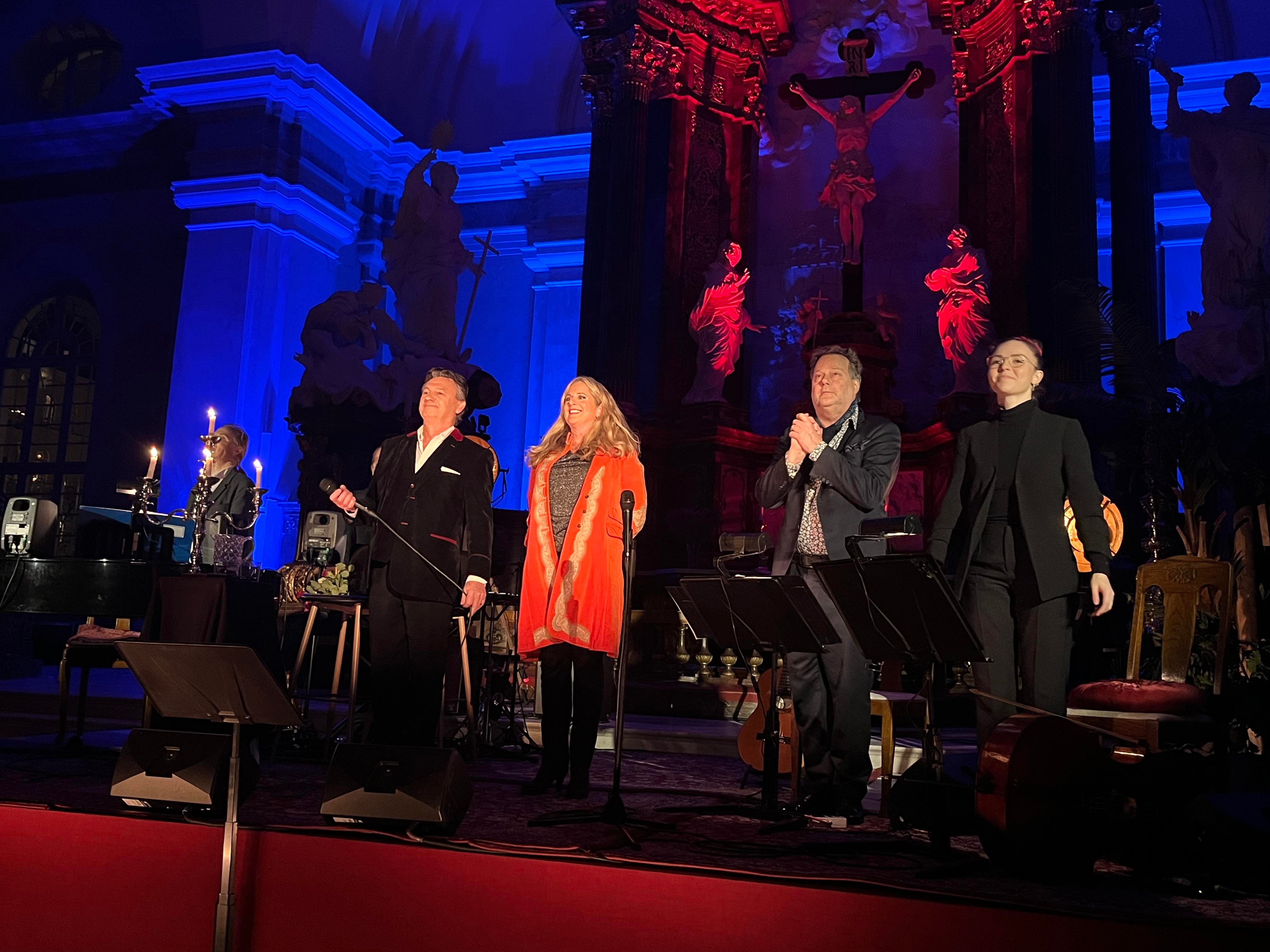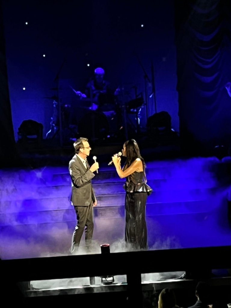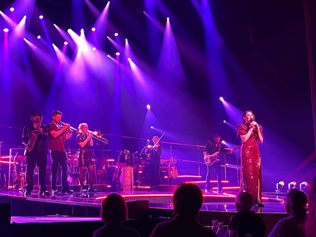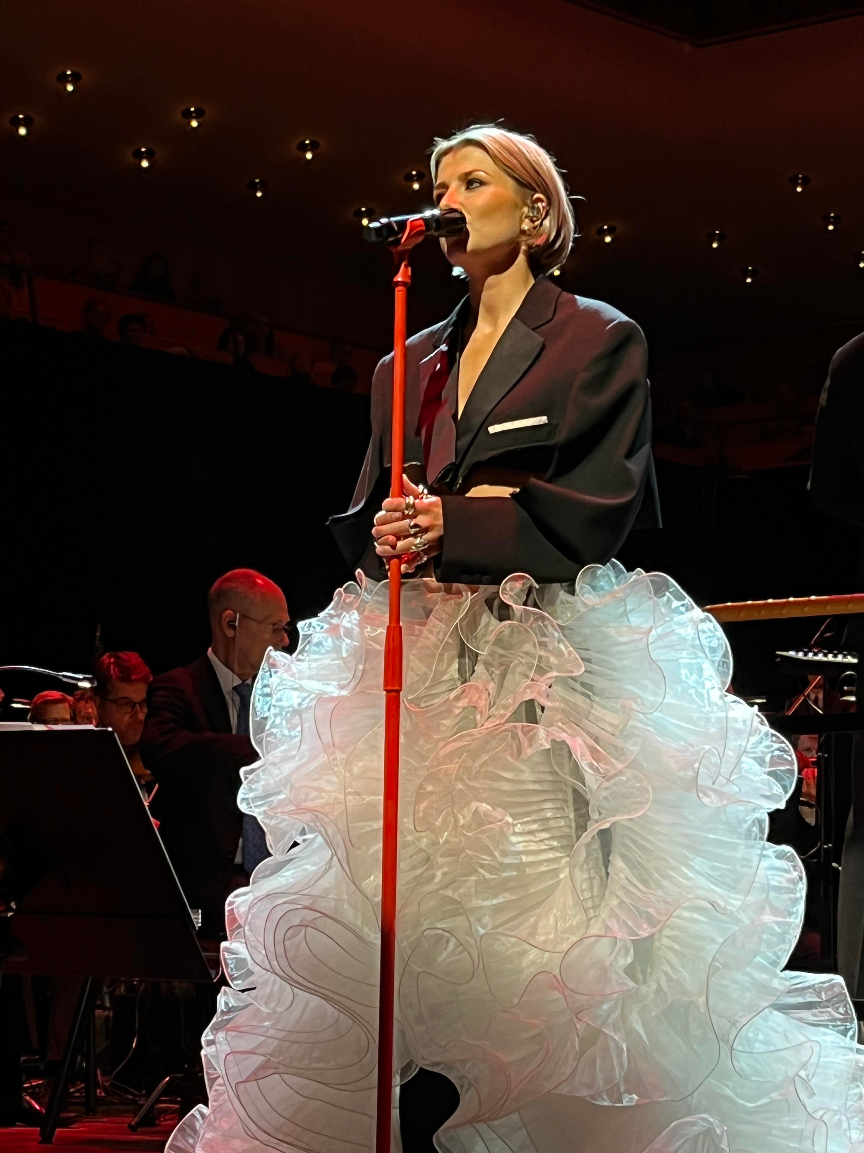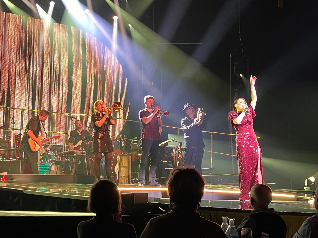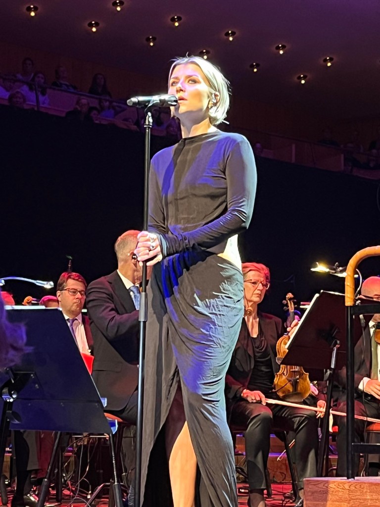 En underbar överraskning och bonus och sen var det verkligen Feeling Good resten av konserten fylld av klassiker och lite nytt. Joachim Bergström gick all in i Mack the Knife och Rennie Mirro släppte som vanligt loss i I Got Rythm. Kvällens gästartist Sarah Dawn Finer förvirrade kvällens dirigent Jonas Nydesjö med sitt inledningssnack när hon pratade om Alla Hjärtans Dag kort innan hon knyter ihop det och hon bjuder på en härlig tolkning av Perhaps, Perhaps, Perhaps med glimten i ögat. Tätt följd av hennes underbara Kärleksvisan. När hon sjunger den så håller man andan och bara njuter av varje ton. Första akten avslutas med Me and my shadow med Joachim och Rennie, en perfekt låt för dem för de är så samsjungna, en given enhet de liksom sitter ihop. I andra akten fortsätter de att sjunga tillsammans i Fine and dandy och Fever som de gör så strålande bra tillsammans.