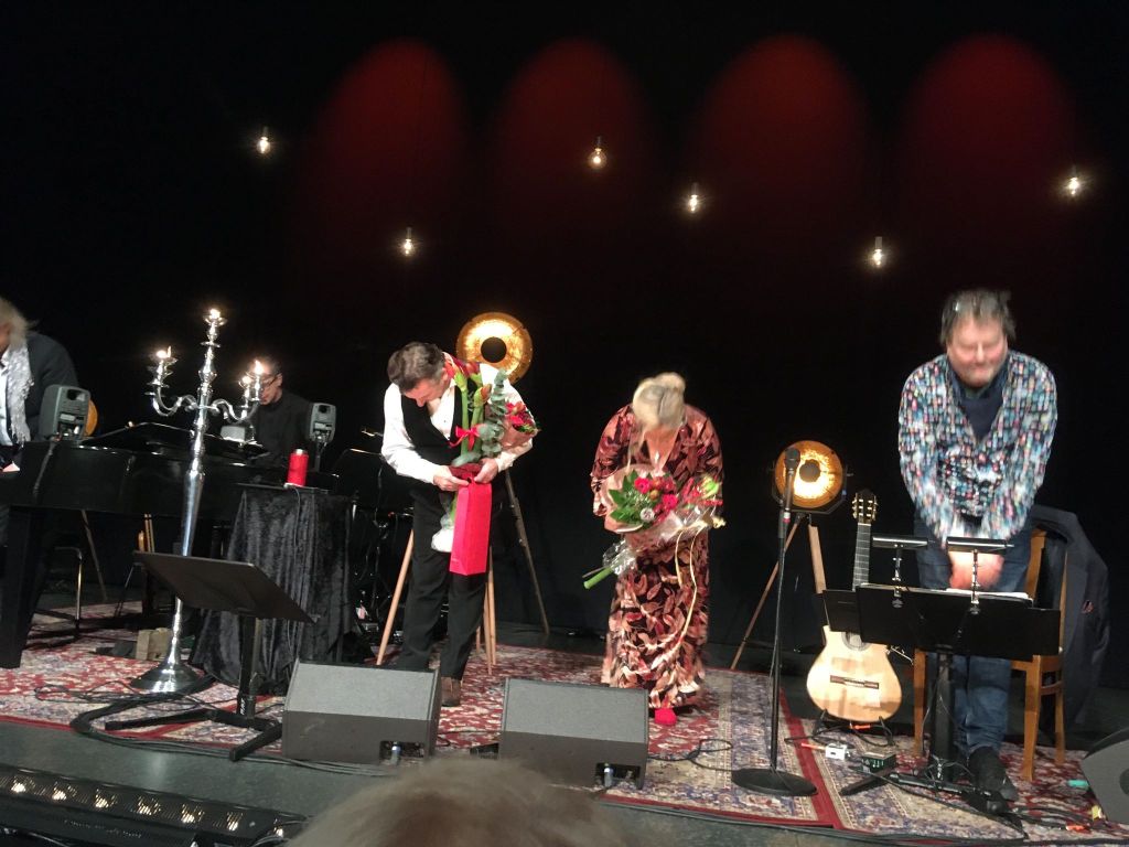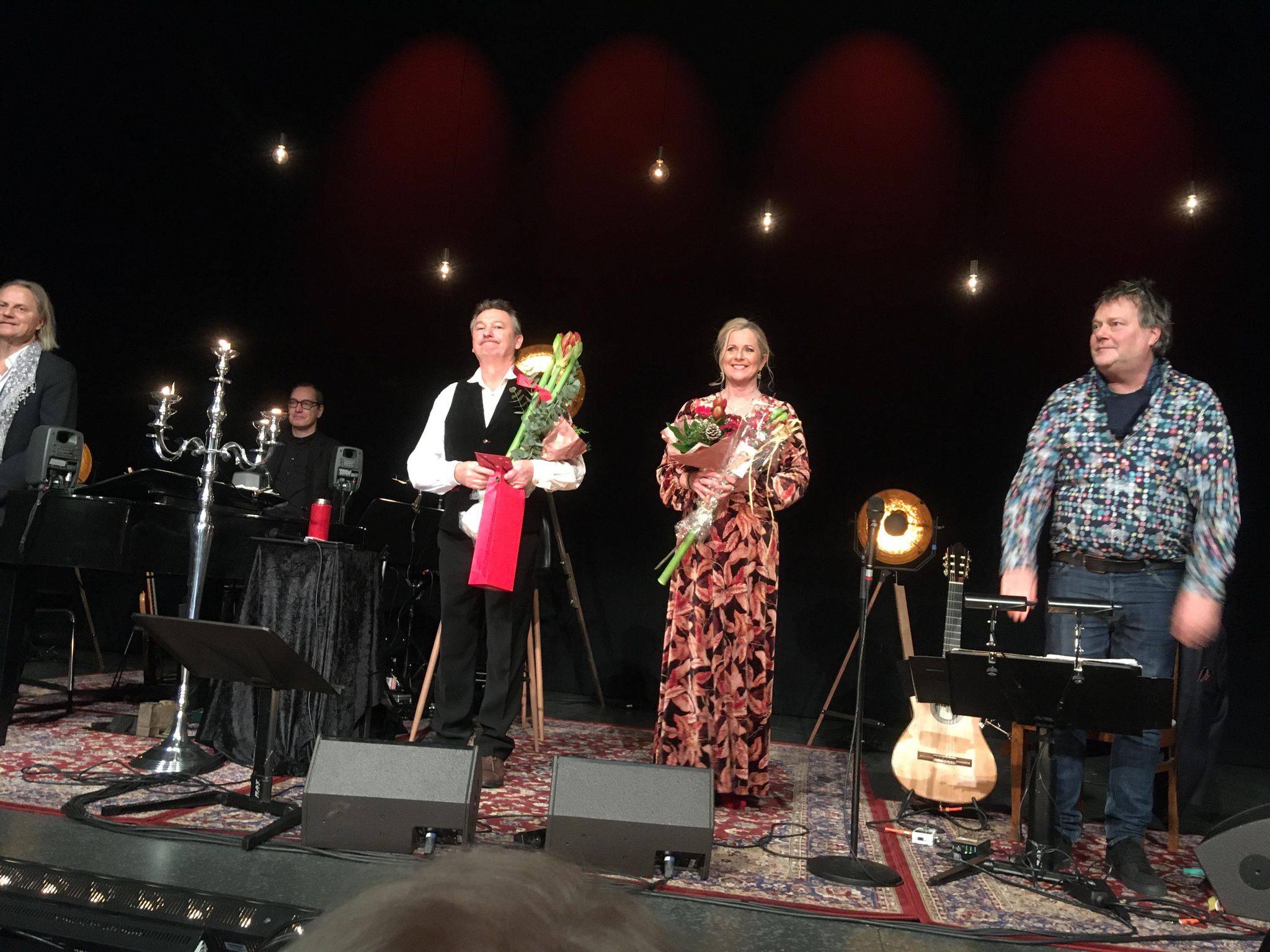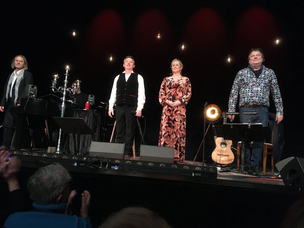 Anders och Gunilla backades upp av de duktiga musikerna Bengt Magnusson, gitarr, Stefan Nilsson, piano, Atida Stahlhammer, cello och Thomas Bergqvist, klaviatur. Bra ljussättning som gav en varm inramning till konserten. För att skapa julstämning behövs inte massa ljuseffekter och strålkastare utan det enkla är det bästa för att ge rätt stämning.