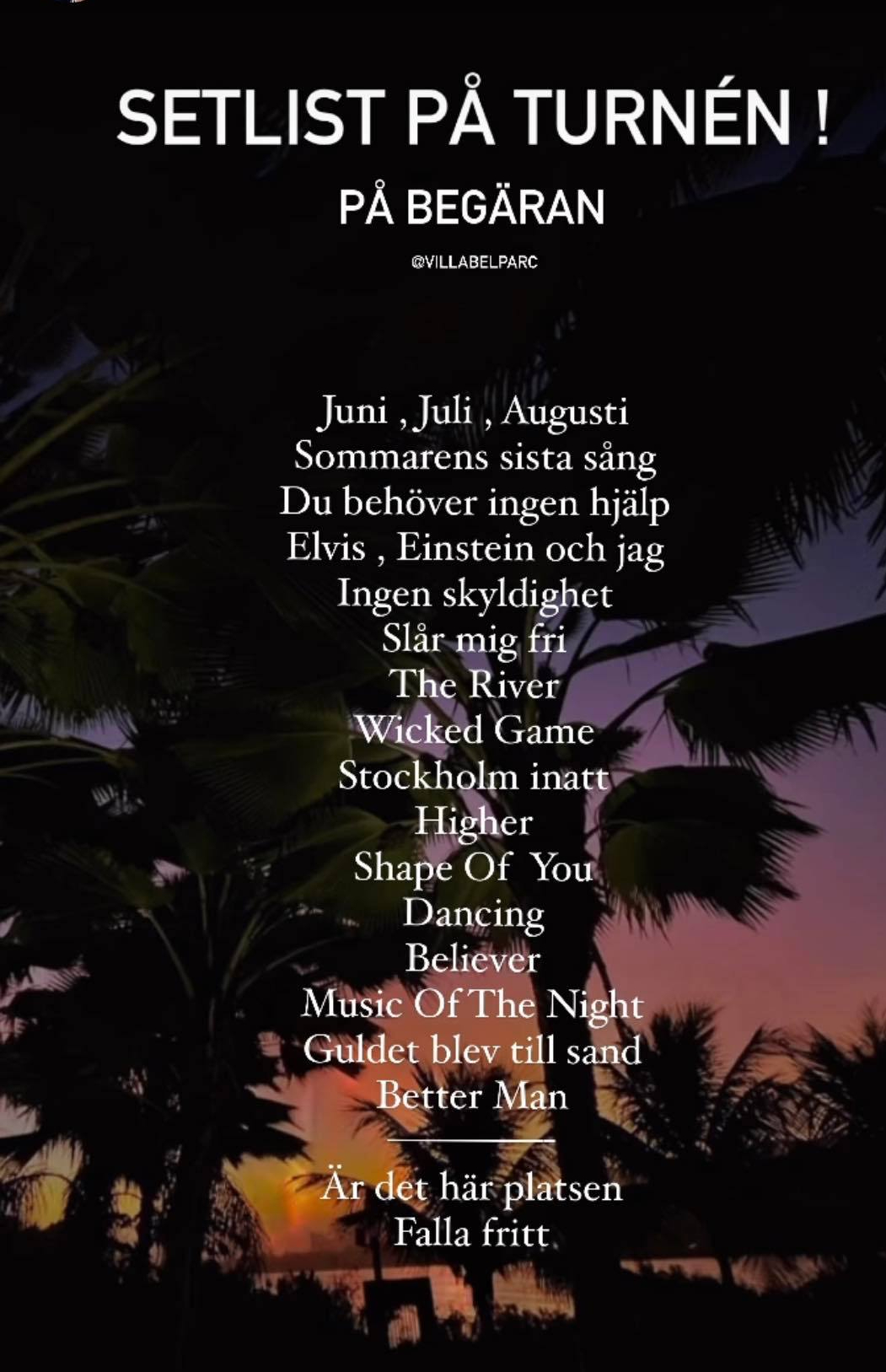 Ett guldkorn som knappt framförts på någon konsert tidigare och som nu plockats fram på begäran av fansen som fått önska låtar till turnén var ledmotivet till Aladdin, ”En helt ny värld” vilken möttes av stort jubel och allsång. Peter har så många bra låter och ikväll fick bara 18 låtar plats på den cirka 2 timmar långa konserten, själv är jag extra glad åt att ”Believer”, ”Är det här platsen”, ”Ingen skyldighet” och ”Wicked games” fick plats. Stella Thors Berefelt fick kliva fram från trummorna för att bli duettpartner till Peter i Wicked Games.