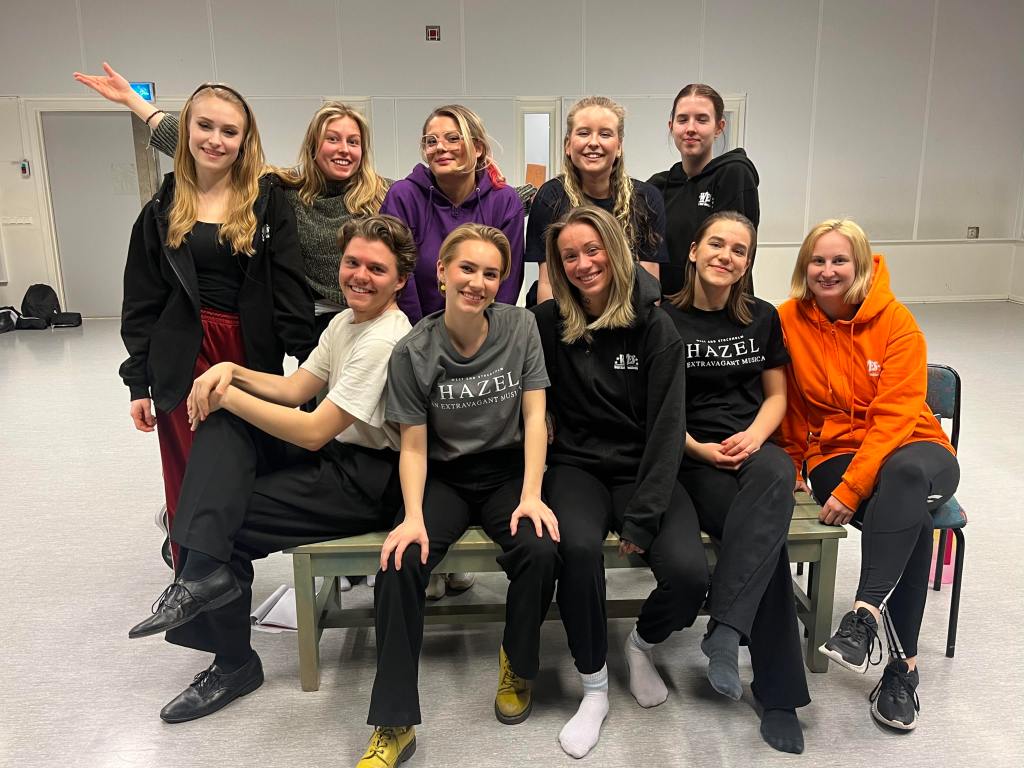 Om knappt en månad, den 5 april har Hazel världspremiär och det repas för fullt i Kulturamas lokaler i Hallonbergen och jag fick komma och titta på en repetition av akt 1. Här möts jag av en ung ensemble full av energi och entusiasm över att får vara med och skapa sina roller. Frida Jokinen (Hazel) och Teodor Wennö (Henry) berättar hur spännande det är just att få få skapa sina roller från grunden. Något som även koreografen Carin Juborg håller med om. Hon har tidigare bl a gjort koreografin till Rent, men där finns det redan förväntningar om hur vissa låtar ska göras. Med Hazel har hon från grunden fått skapa hur dansen och rörelserna ska förstärka känslorna och handlingen., en spännande och kul utmaning. Ett teamwork där alla får vara med och bidra och skapa.