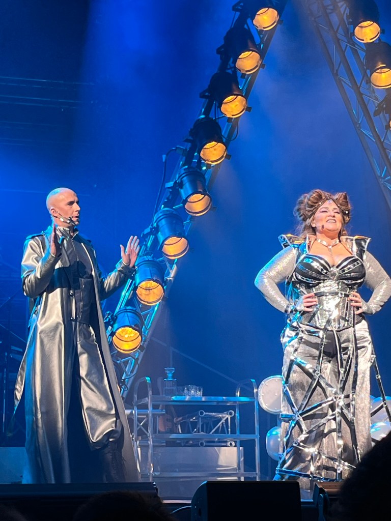 Föreställningen bygger på Aladdin men det är en egen version och inte en Disneyuppsättning, t ex heter inte prinsessan Jasmine utan Safa (Kiana Blanckert) och Jafar är här en elak makthungig trollpacka vid namn Tant Zallam (Anna Norberg). Nils Boyer är charmig som Aladdin och har en fin kemi med Kiana Blanckert och jag hade gärna sett mer av deras kärlekshistoria. Ingen romantisk flygande matt-tur för dem. Mattflygning blev det för Aladdin och hans nyfunne vän Mattadår – en småkomisk ny karaktär spelad av Einar Alvarador Lönnberg.