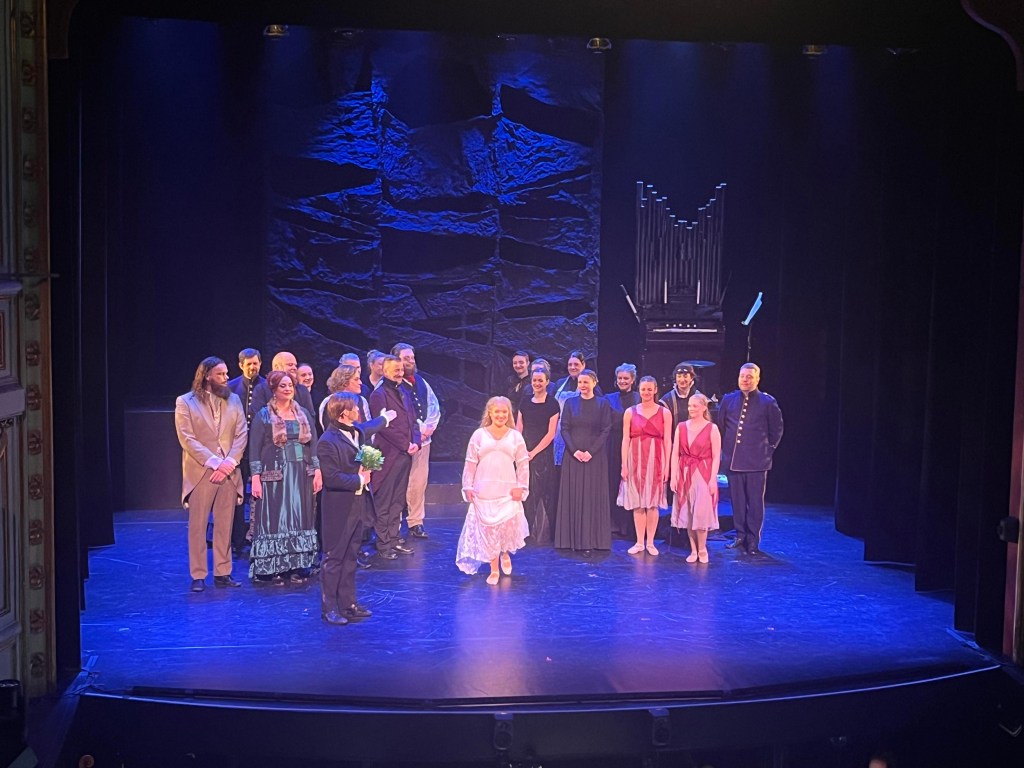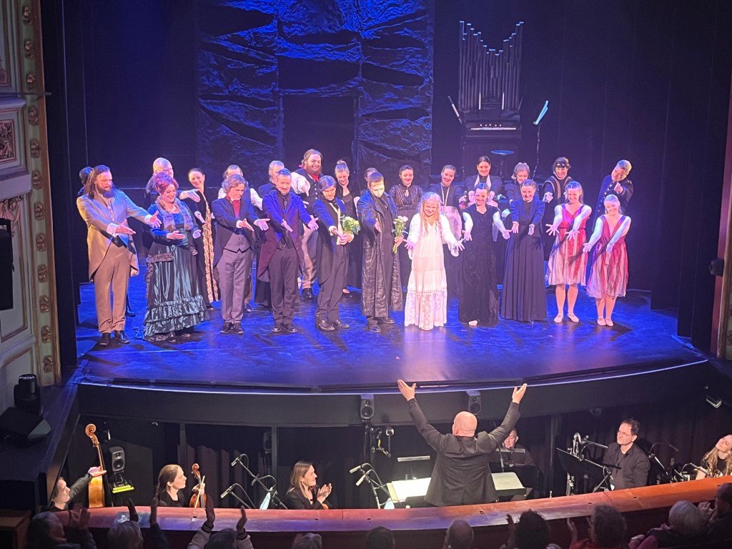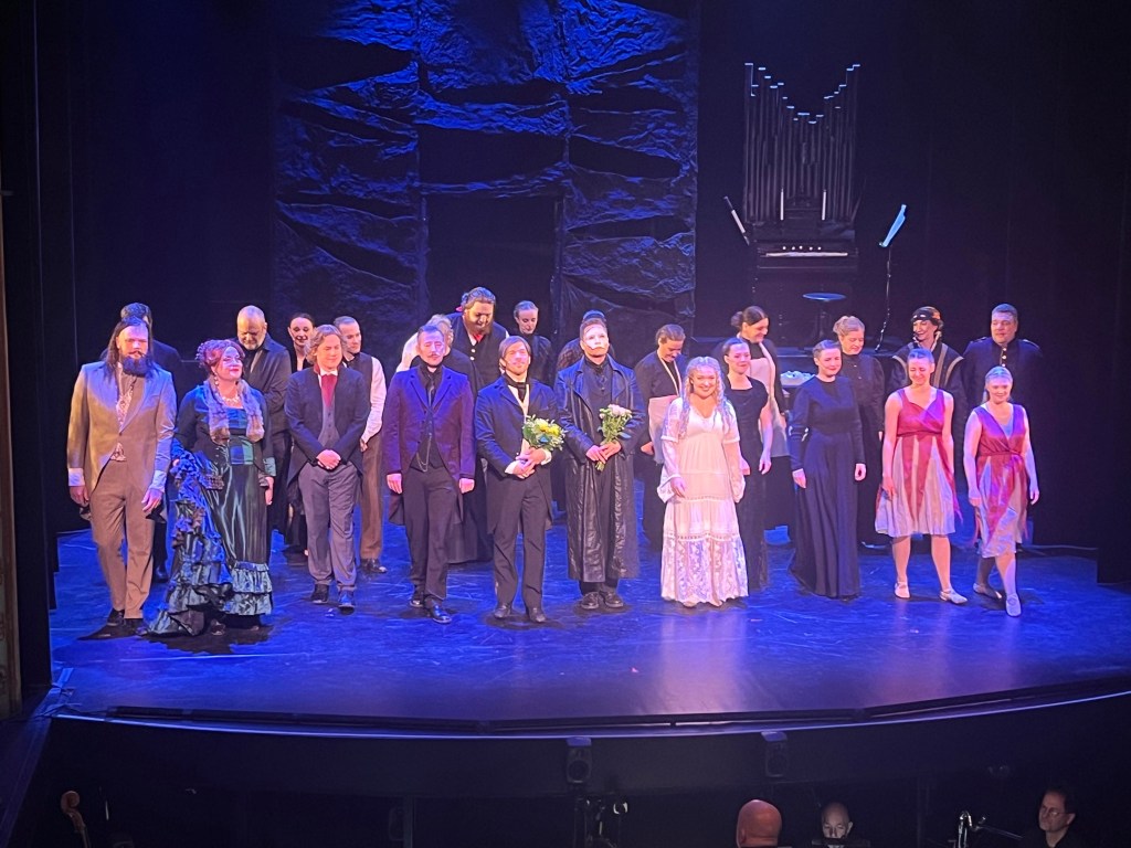 Det finns nog bara en sak jag skulle önska att man hade jobbat lite mer på och det är ljussättningen. Upplevde att det var för mycket mörker och skuggor på ansiktena i vissa kritiska scener där jag skulle velat se ansiktsutrycken och känslospelet. Men inte ens det hindrade mig från att flera gånger få rysningar av sången och musiken. En riktigt magisk upplevelse. Det märktes också att Julian Bigg fått lite fria tyglar här för det vara lite extra långa toner på nåt ställe. Sånt lyx med en levande orkester i den här klassen. Det här var Julian Biggs sista föreställning i den här uppsättning och han tackades av och berättade själv hur fantastiskt det varit att få vara med i den här speciella uppsättningen som inte följde det fasta konceptet och han vet som har jobbat i 30 år med Fantomen runt om i världen.