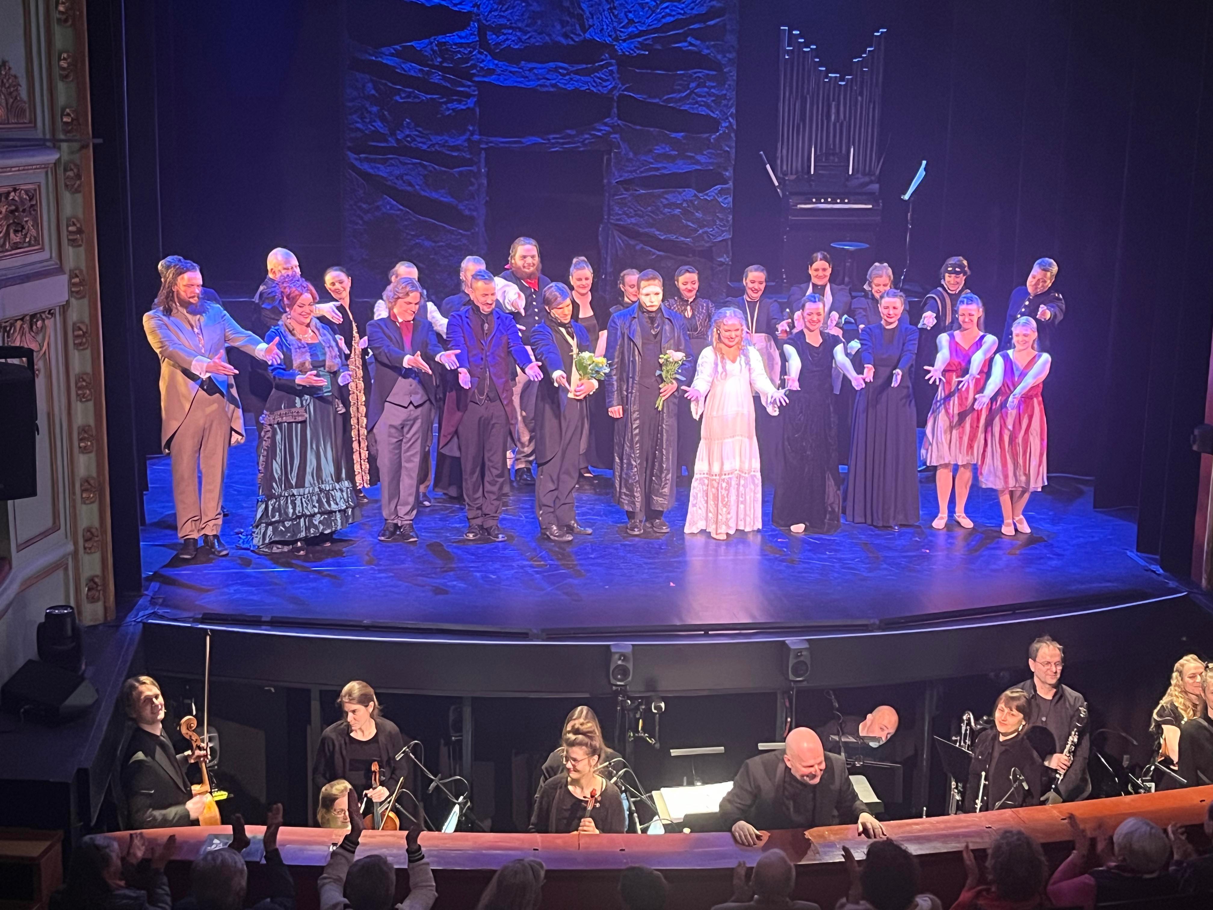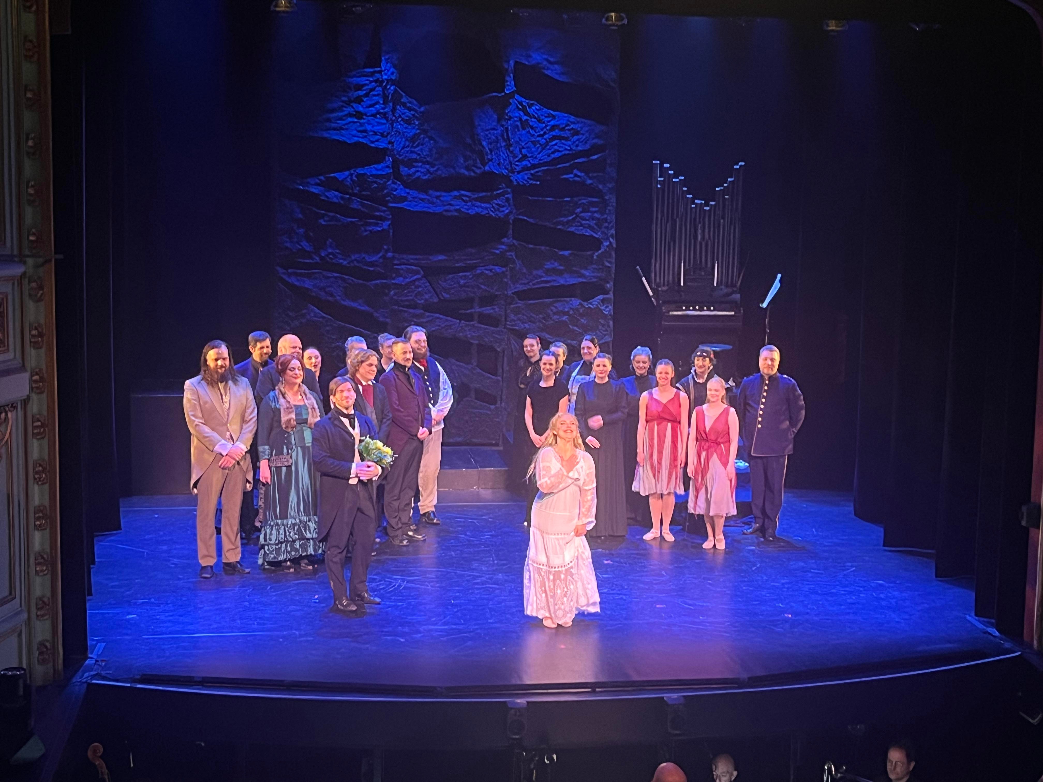 Det finns nog bara en sak jag skulle önska att man hade jobbat lite mer på och det är ljussättningen. Upplevde att det var för mycket mörker och skuggor på ansiktena i vissa kritiska scener där jag skulle velat se ansiktsutrycken och känslospelet. Men inte ens det hindrade mig från att flera gånger få rysningar av sången och musiken. En riktigt magisk upplevelse. Det märktes också att Julian Bigg fått lite fria tyglar här för det vara lite extra långa toner på nåt ställe. Sånt lyx med en levande orkester i den här klassen. Det här var Julian Biggs sista föreställning i den här uppsättning och han tackades av och berättade själv hur fantastiskt det varit att få vara med i den här speciella uppsättningen som inte följde det fasta konceptet och han vet som har jobbat i 30 år med Fantomen runt om i världen.